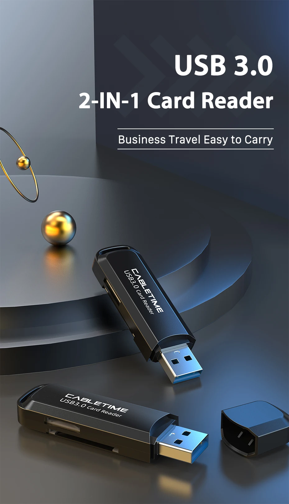 Comprar CABLETIME-lector de tarjetas SD USB 3,0 a Micro SD y TF, adaptador OTG de memoria externa 2 en 1 para Xiaomi MacBook Air Pro C376