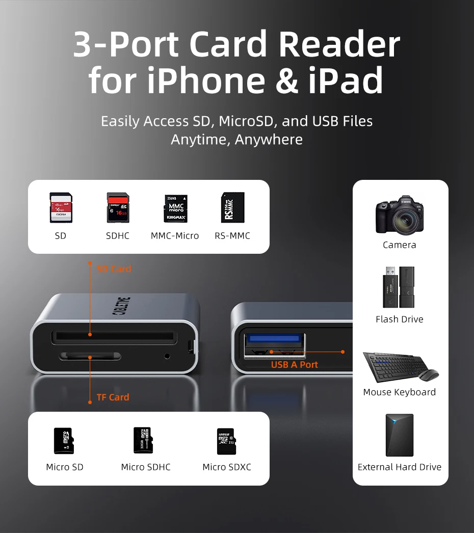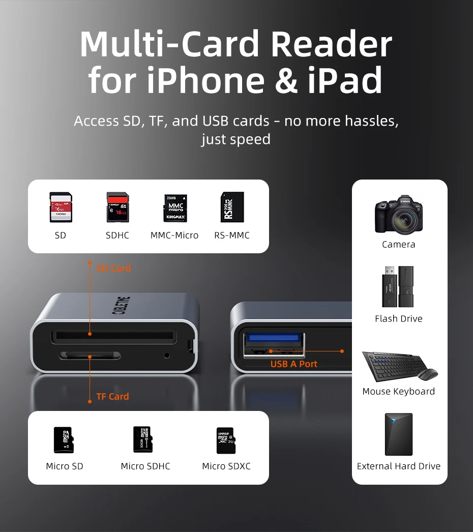 Todo está bien, la tarjeta que tiene una definición de velocidad de lectura de 200MB/s en realidad es de 150MB/s, lo cual es suficientemente rápido para mí. Podría ser un poco más pequeña, pero es universal para eso. Y la carcasa de metal es bonita.