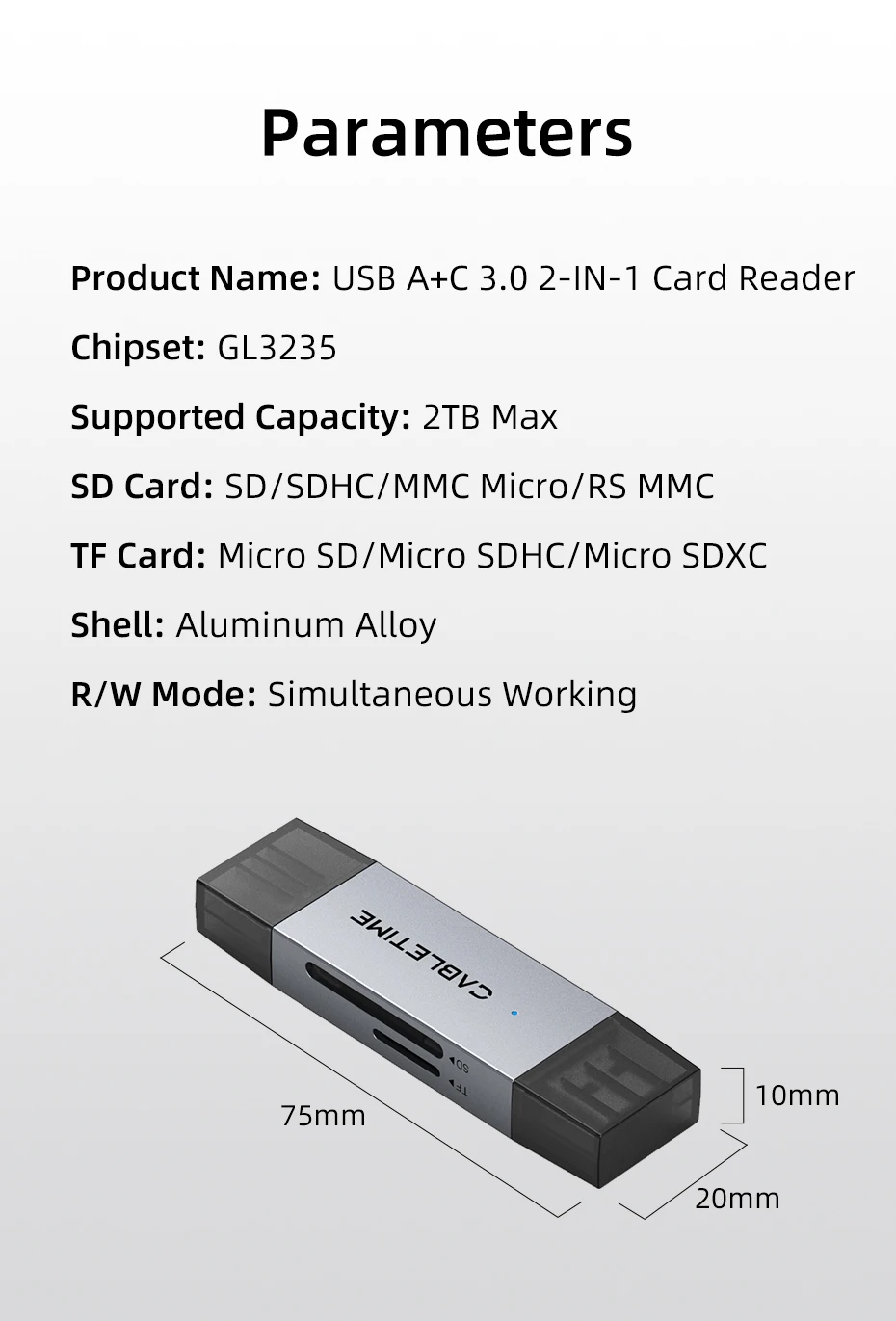 Comprar CABLETIME-lector de tarjetas USB 3,0, 2 en 1, USB C, 3,0 a Micro SD, 104 MB/s, para Android, IPad, MacBook Pro, C507