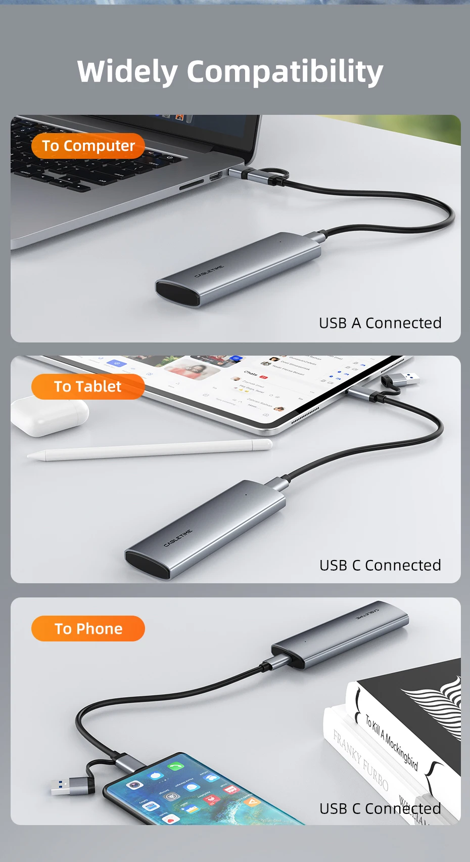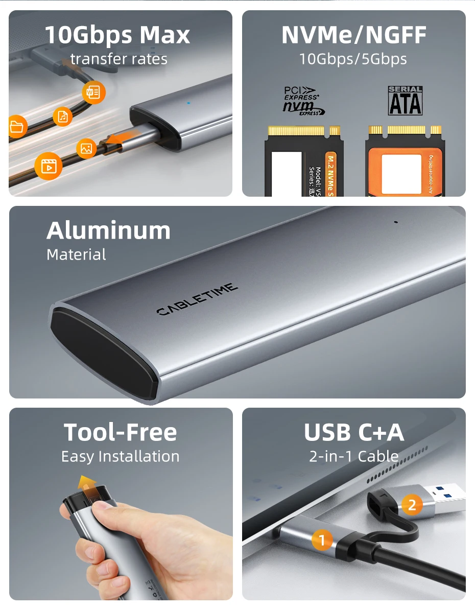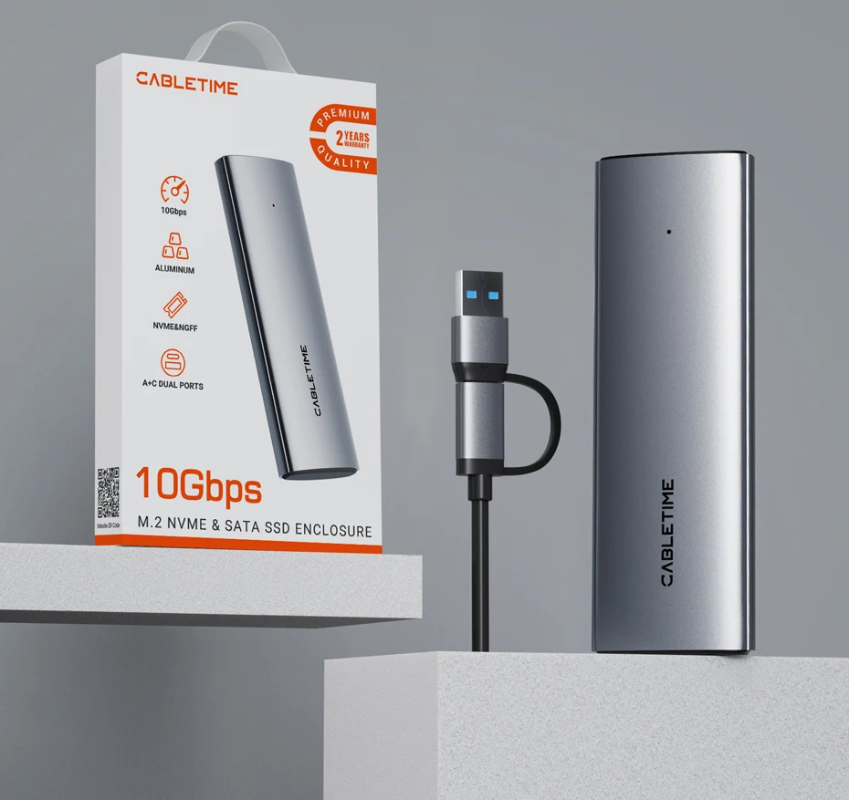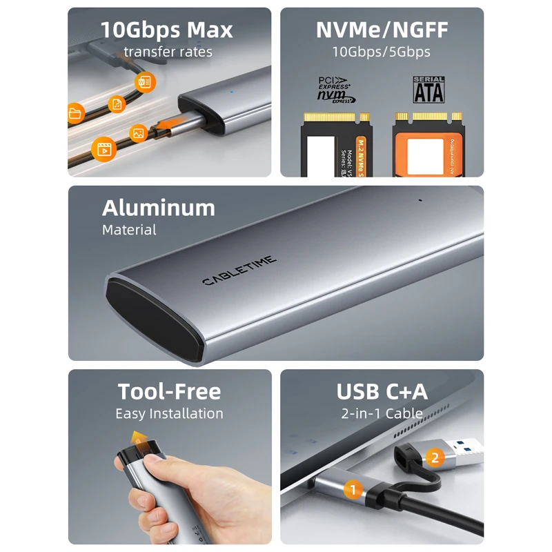 Comprar CABLETIME M2 SSD caja NVMe PCIE SSD USB C 3,2 Gen2 10Gbps M.2 a USB C SSD adaptador para NVME PCIE NGFF disco SATA