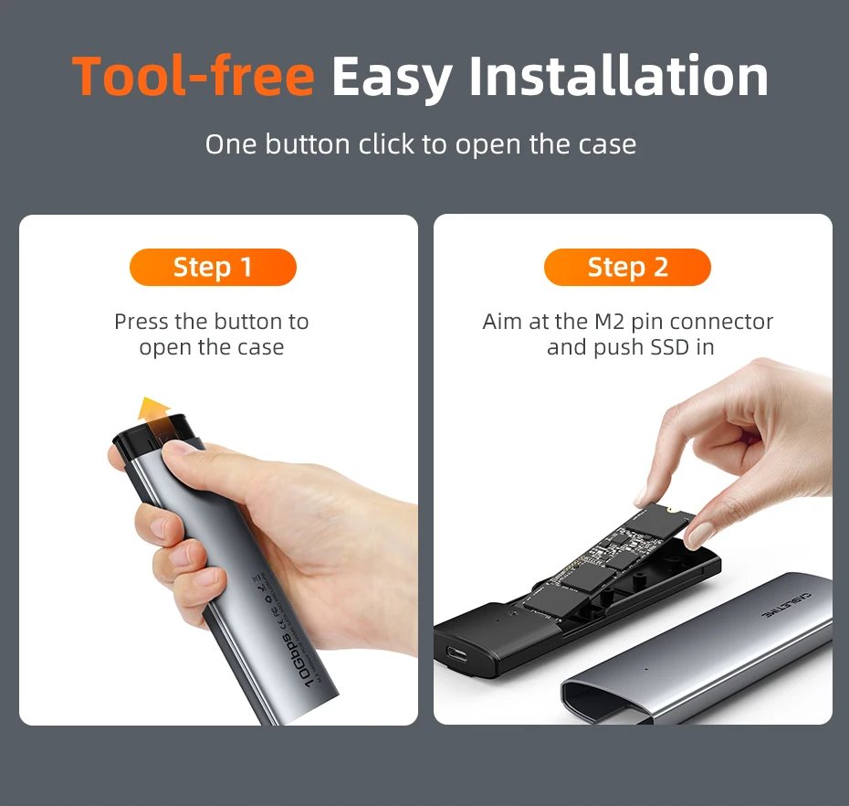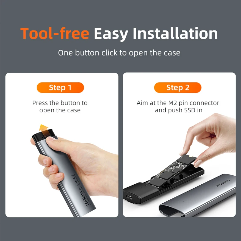 100% libre de herramientas para una instalación rápida y sencilla de su SSD M.2 NMVe o SSD M.2 SATA.plug-and-play, no se requieren controladores.El diseño de fijación de la carcasa SSD USB 3.1 NMVe PCIE M 2 garantiza una transferencia de datos estable y rápida.