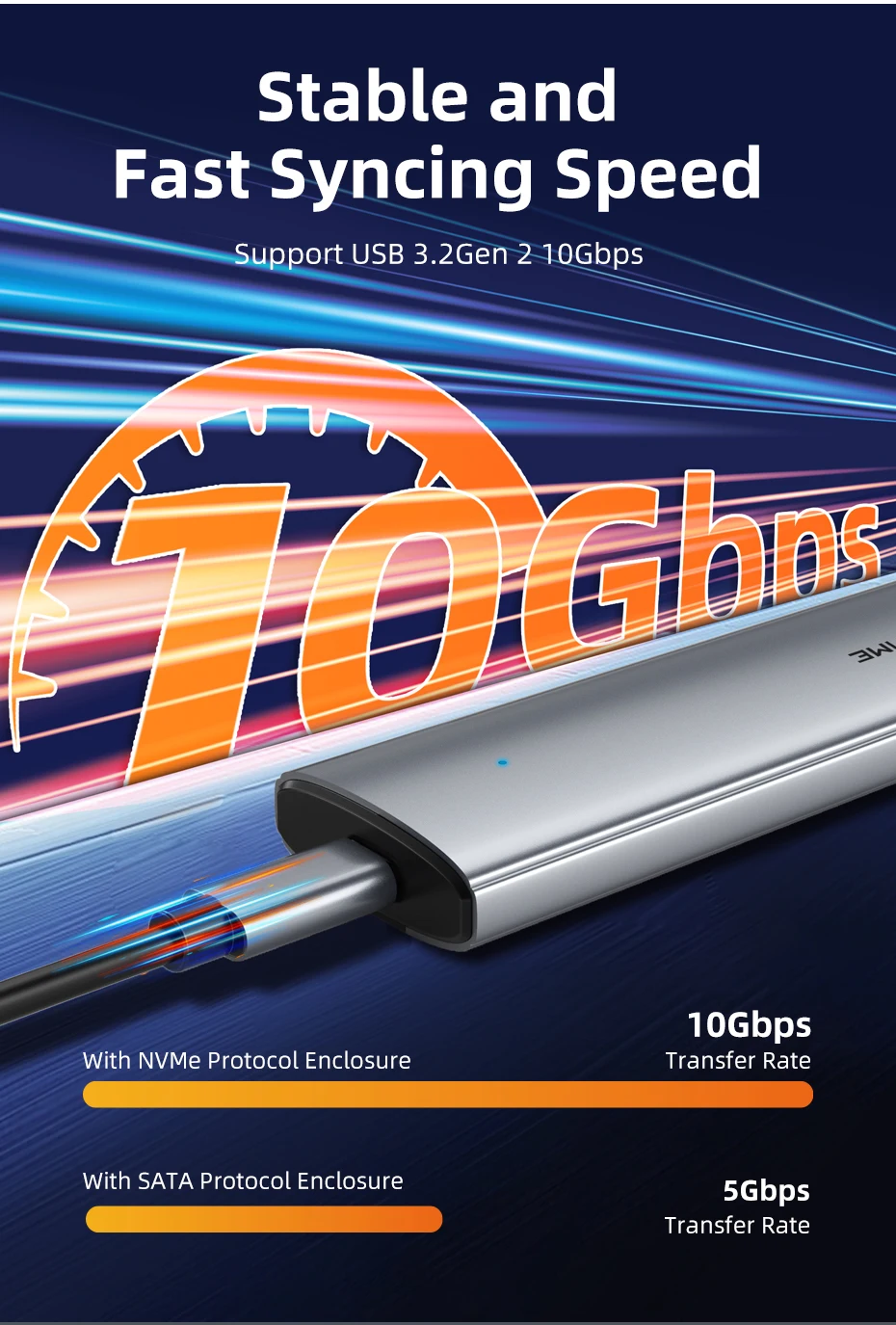 La carcasa SSD USB 3.1 Gen2 M.2 NVMe incluye un cable USB A+USB C Gen2 2 en 1.Ofrece velocidades de transferencia de hasta 10 Gbps como M.2 gabinetes NVMe y 6 Gbps utilizando el protocolo SATA.Por lo tanto, transferir un archivo de 5 GB tarda solo de 2 a 5 segundos, la carcasa del adaptador pcie m 2 nvme ssd a USB c es la solución perfecta para la transferencia de datos y la copia de seguridad de datos.El producto es compatible con Thunderbolt 3 y es compatible con USB 3.1 y USB 3.0