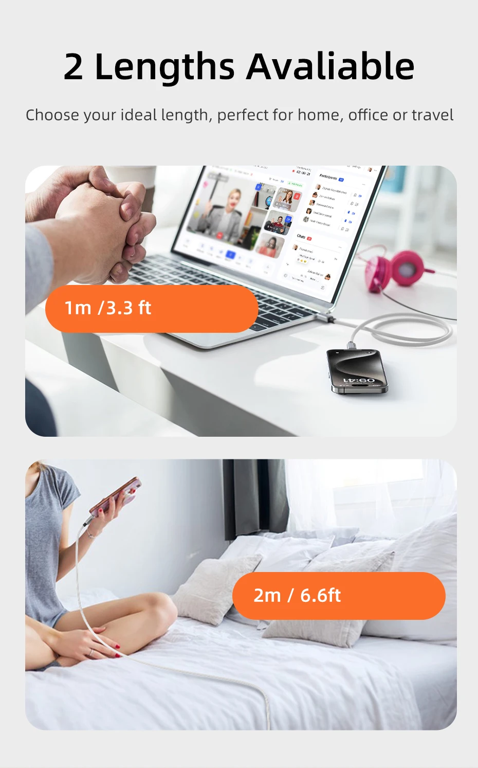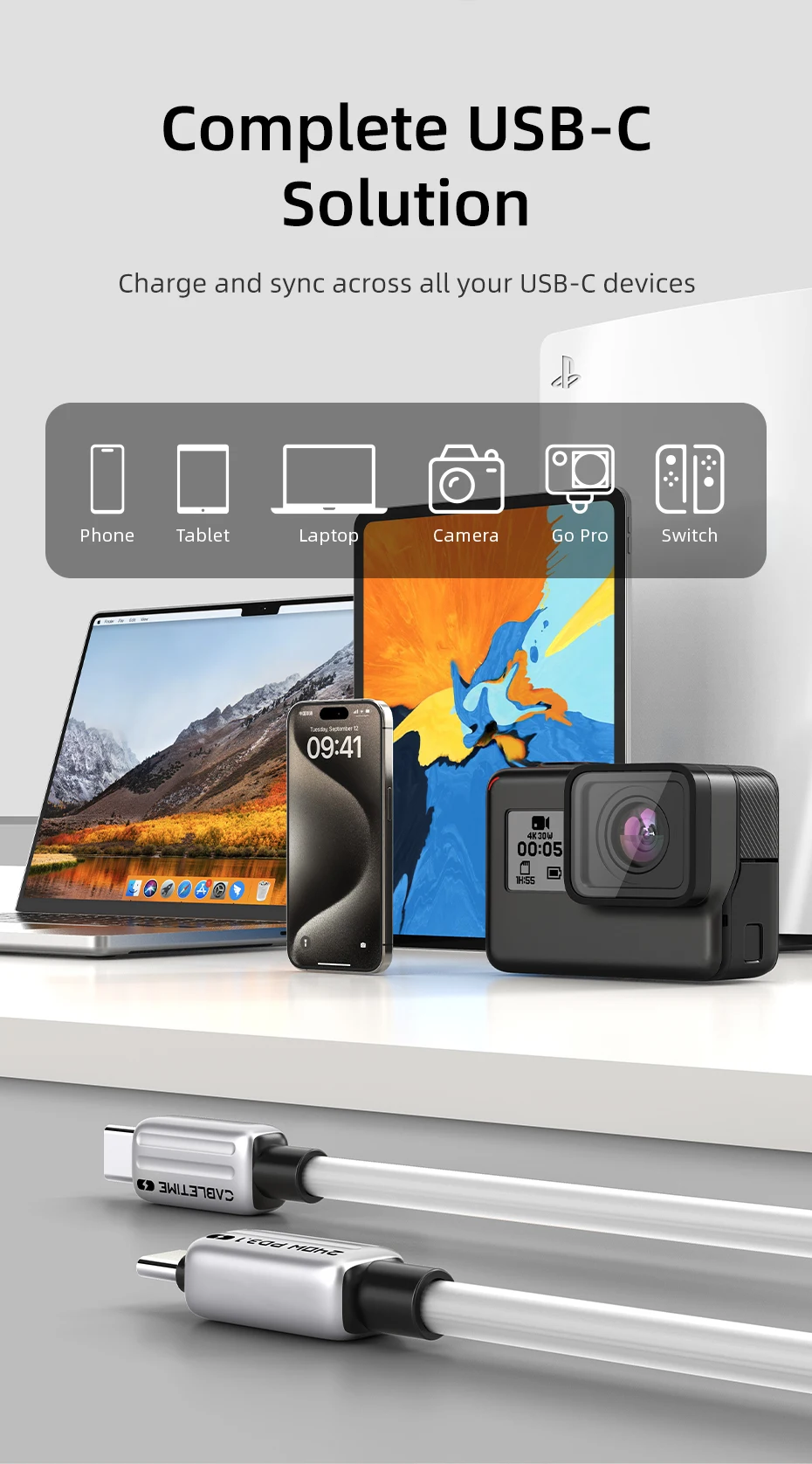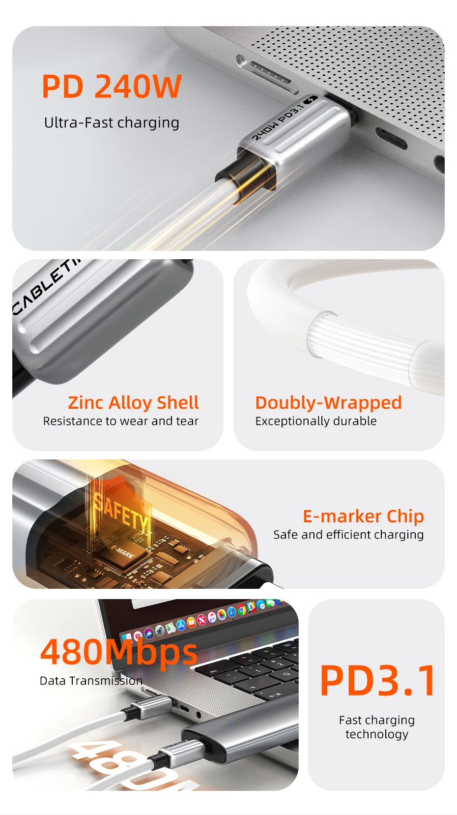 Con la tecnología de carga rápida PD 3.1 y QC 4.0, el cable de carga rápida USB C Cabletime admite una impresionante salida de 240 W (48 V/5 A).Carga rápidamente un iPhone del 15 al 85%, un MacBook Pro al 88% y un iPad Pro al 92% en menos de 35 minutos.Además, es compatible con adaptadores USB-C Power Delivery que van desde 30 W hasta 140 W, lo que garantiza que se pueda cargar una amplia gama de dispositivos de manera eficiente y segura.