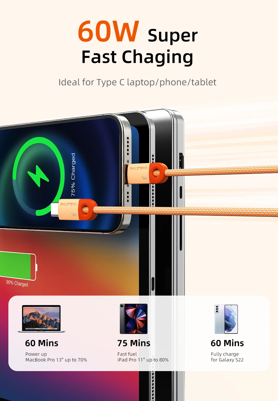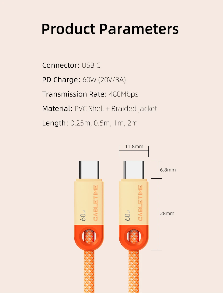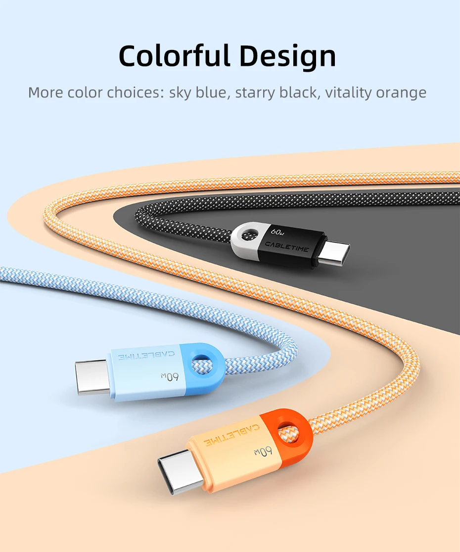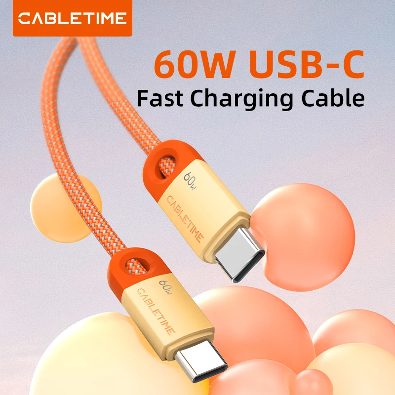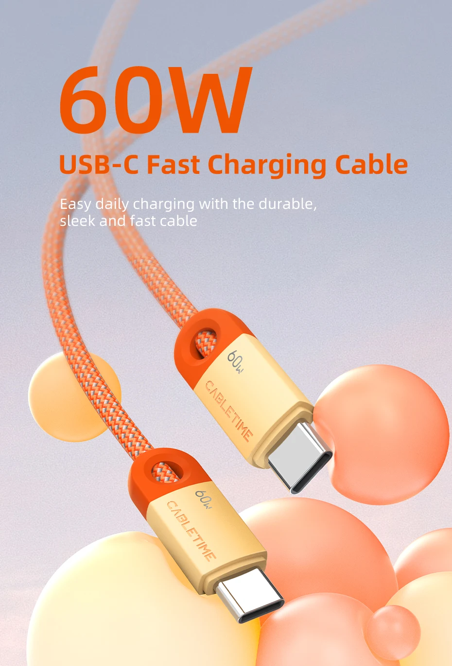 Comprar CABLETIME PD60W Cable USB-C a USB-C Cable de carga y sincronización de datos de alta velocidad Cable de carga rápida duradero para iphone ipad Samsung