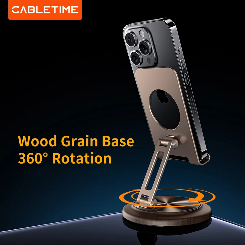 Comprar CABLETIME-soporte plegable y ajustable para tableta, Base de madera Natural con rotación de 360 grados, para teléfono, iPad, D4