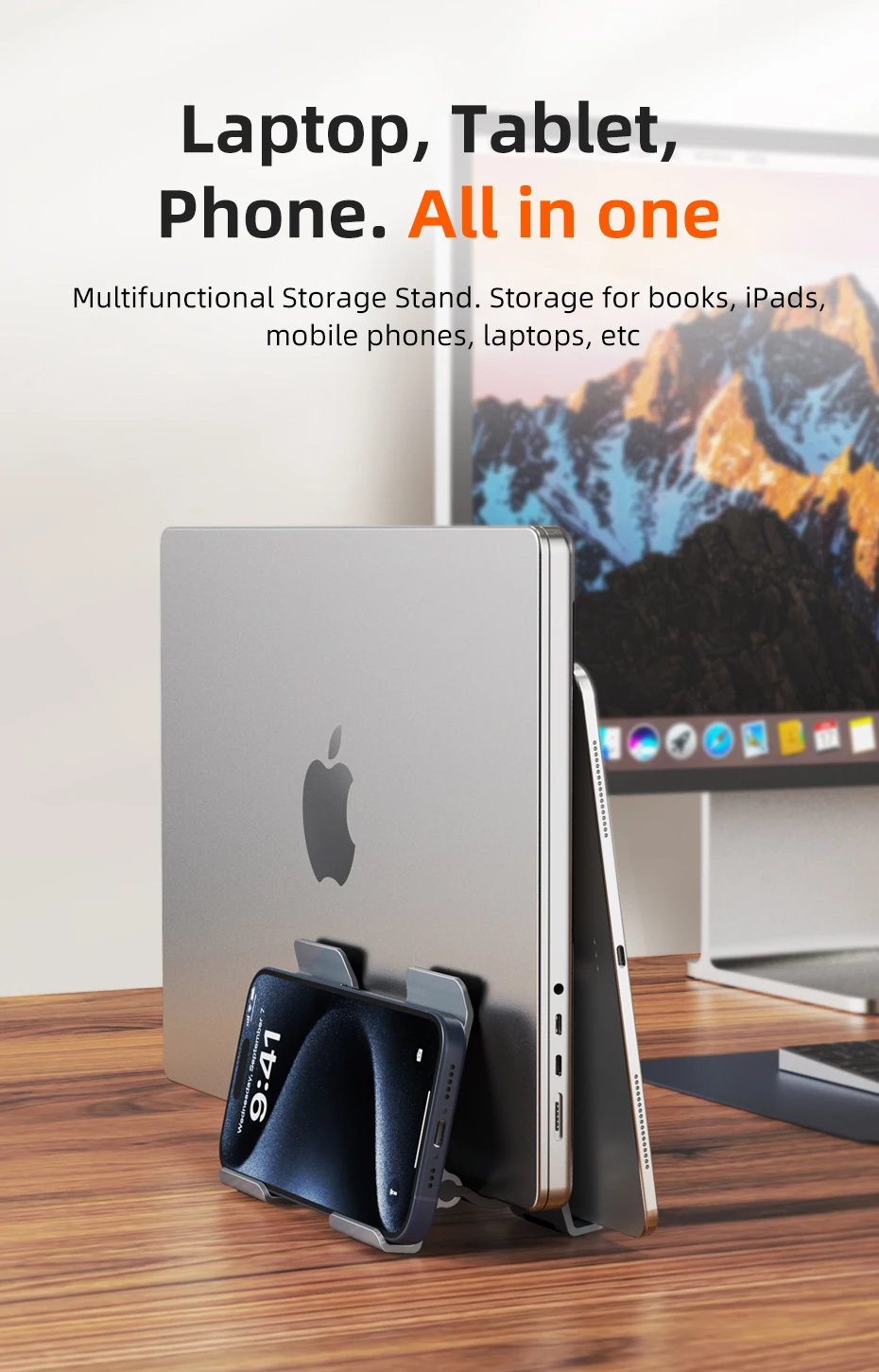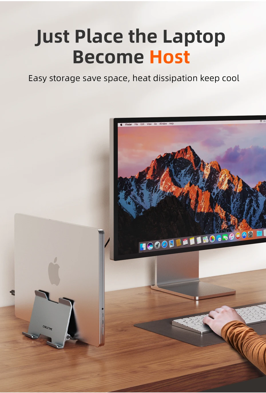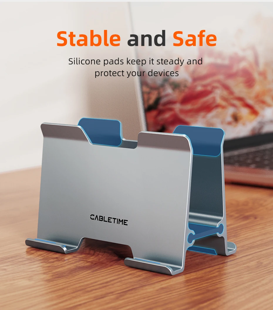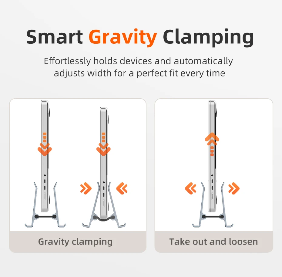 El soporte para portátil Cabletime Gravity es una adición esencial a cualquier escritorio. Su elegante diseño vertical no solo ahorra un valioso espacio en el escritorio, sino que también asegura sus dispositivos con una abrazadera de gravedad inteligente. Fabricado con aluminio de primera calidad y reforzado con gel de sílice suave, este soporte se ajusta automáticamente al ancho de su ordenador portátil para un ajuste cómodo y seguro. Simplifica su espacio de trabajo y garantiza que sus dispositivos estén organizados, sean accesibles y se presenten con elegancia moderna.