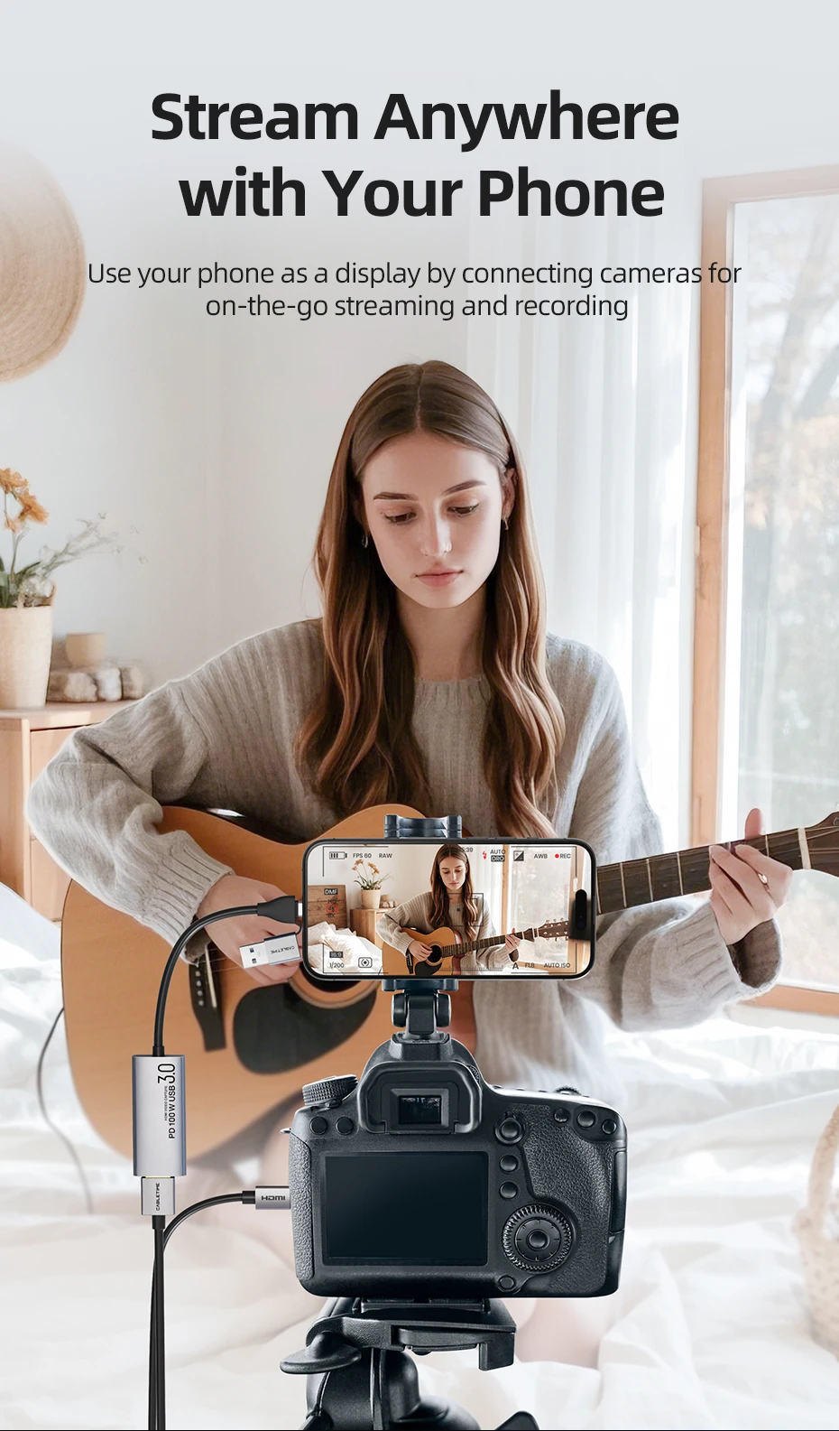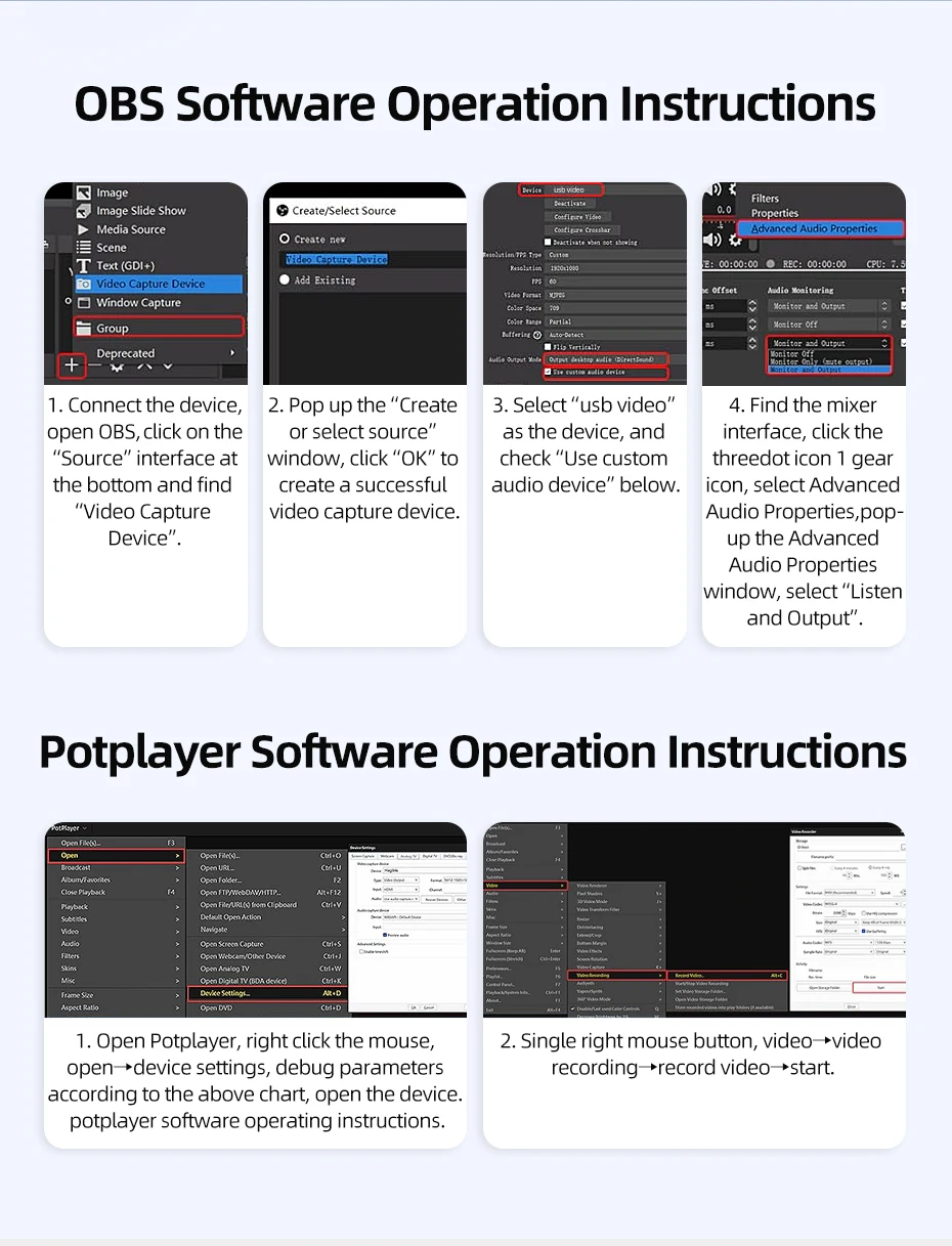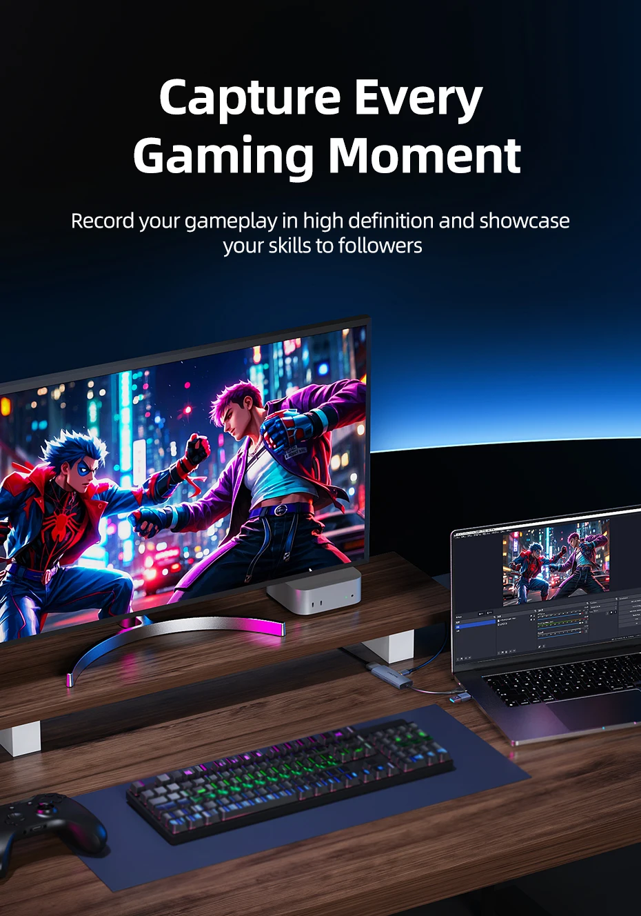 Featuring USB-A and USB-C dual interfaces, this capture card meets the needs of both older and newer devices, offering universal compatibility with laptops, mobile phones, tablets,cameras and other devices . Whether you're streaming a console game, hosting a live event, or using a tablet as a camera monitor, this capture card ensures seamless connectivity without interface mismatches.