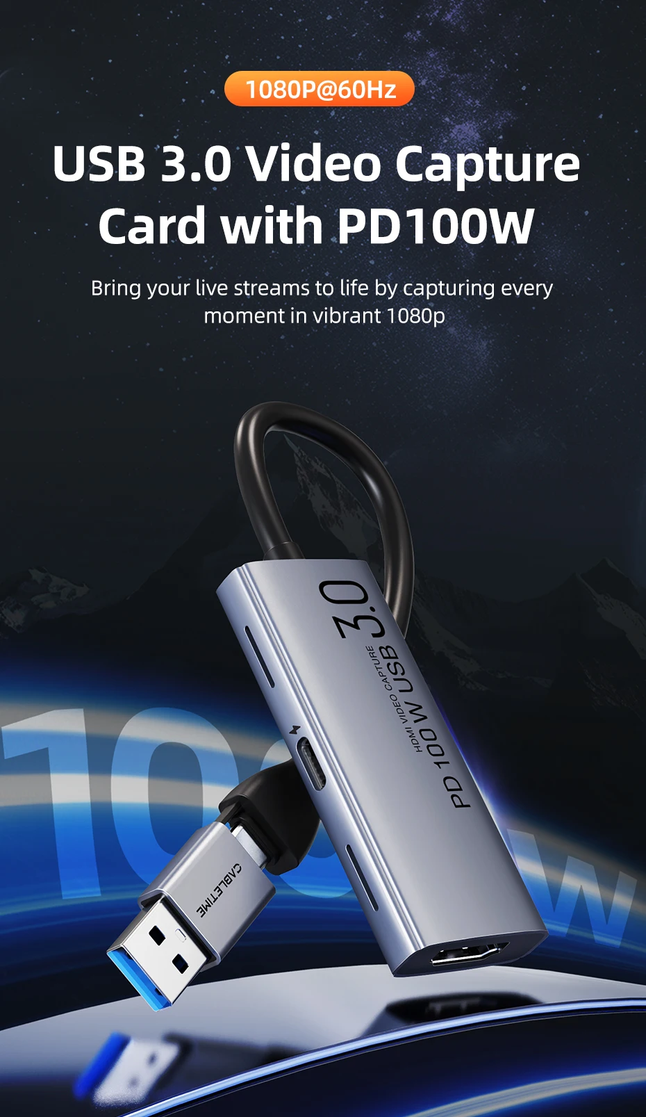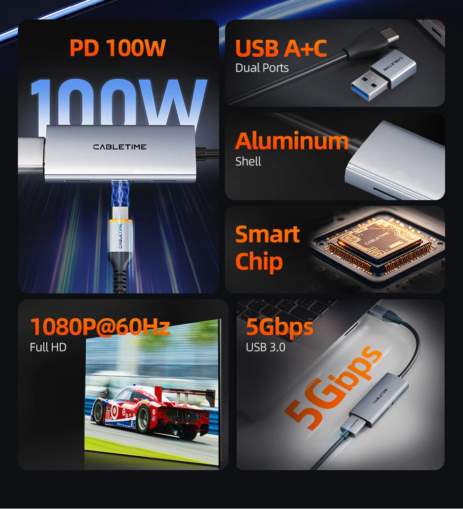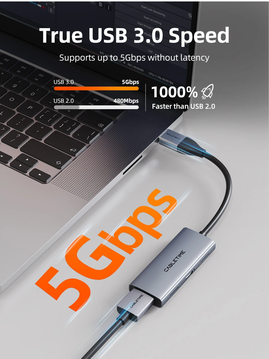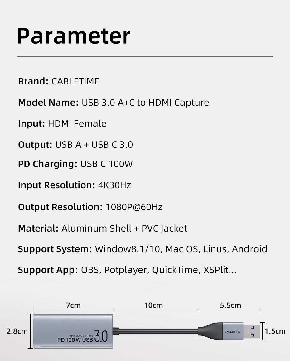 Comprar CABLETIME USB 3,0 tarjeta de captura de vídeo PD 100W HDMI captura 5Gbps 4K 1080p Full HD para PS5 Srteaming Switch grabadora de vídeo