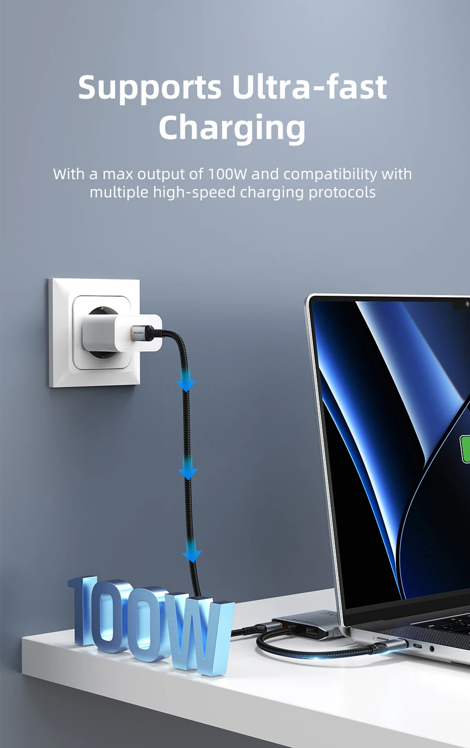 • Pantalla única de 8K a 30 Hz • Pantalla MST dual de 4K a 60 Hz • Súper carga de 100 W