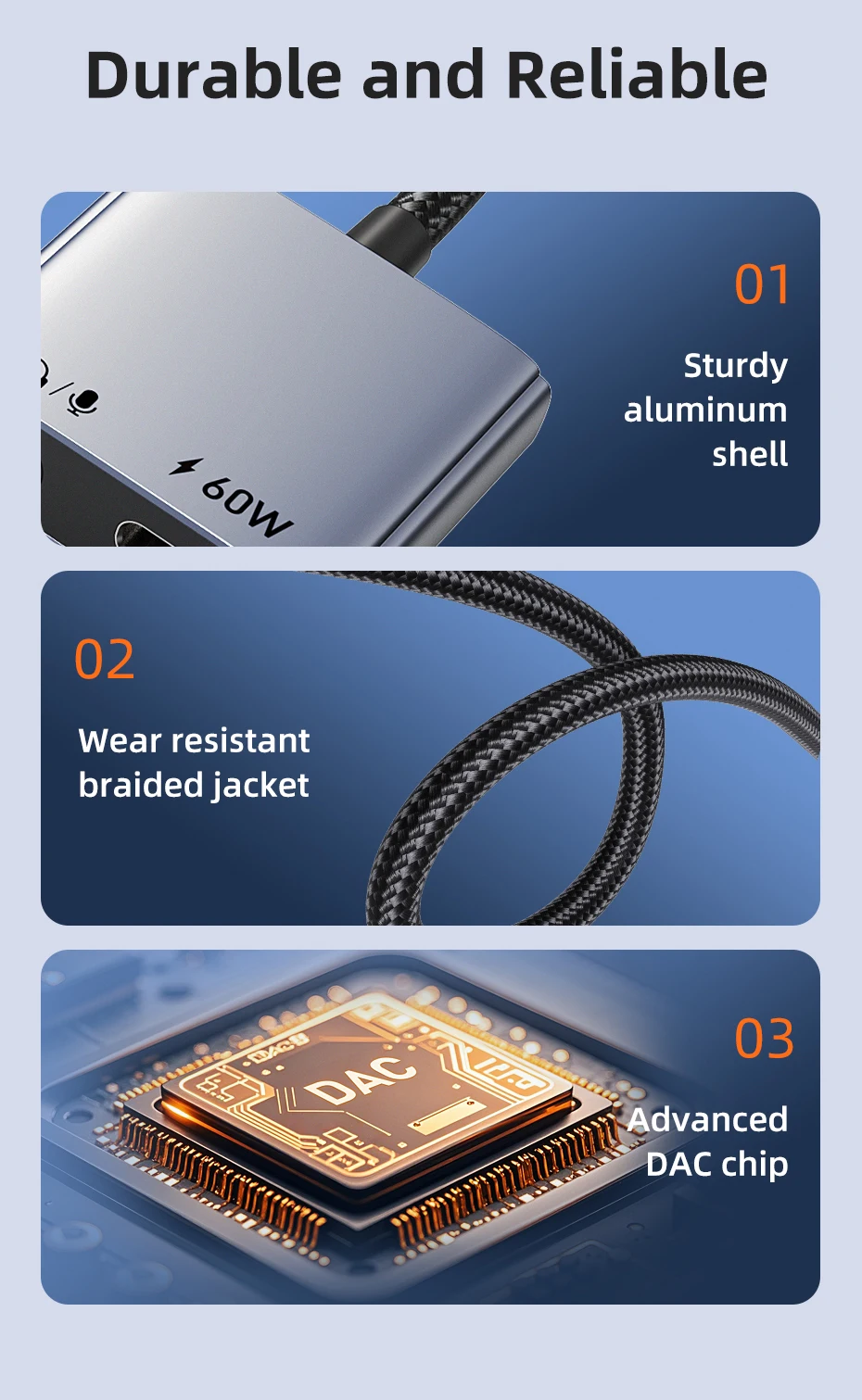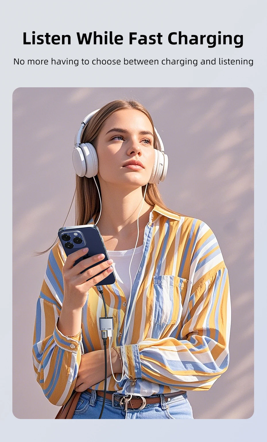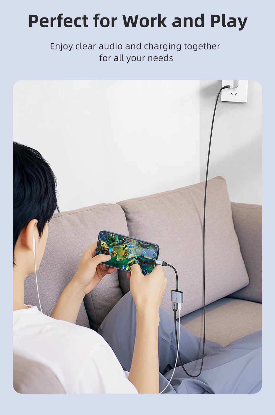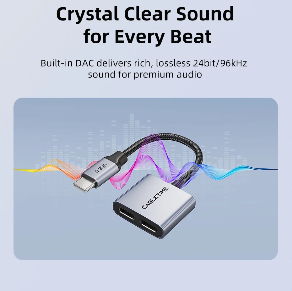 CABLETIME USB C a Dual USB C Adaptador de cargador y auriculares 2 en 1 PD 60W Cargador rápido Adaptador de aluminio Hi-Fi para IPhone HUAWEI