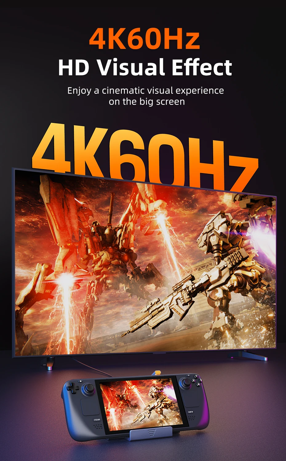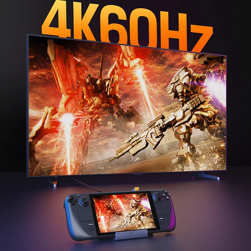 Immerse yourself in a stunning 4K visual feast with our Steam Dock. Featuring an HDMI port, you can effortlessly mirror or expand your Steam Deck to a TV or laptop. Experience your favourite games on a grand scale with a 4K big screen, taking your gaming sessions to new heights of clarity and immersion.
