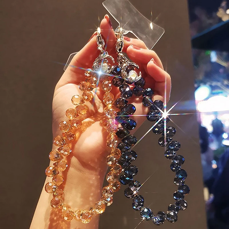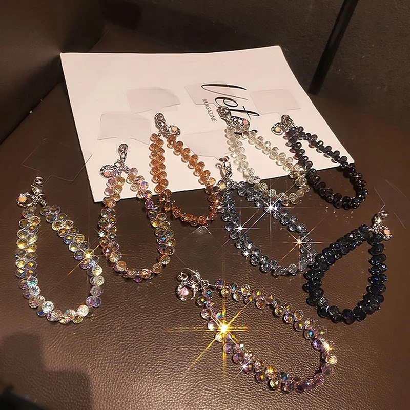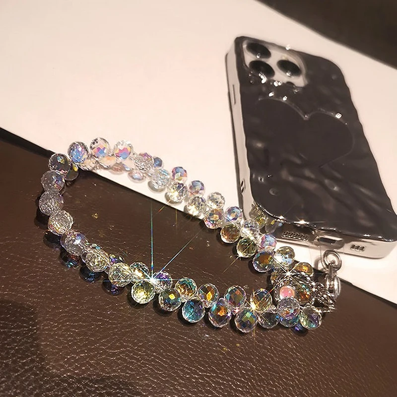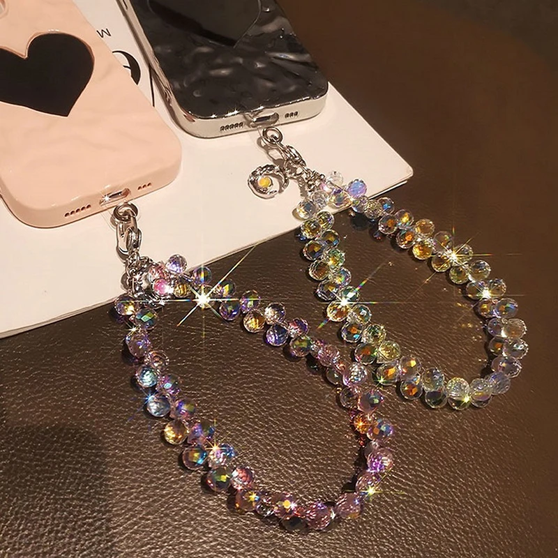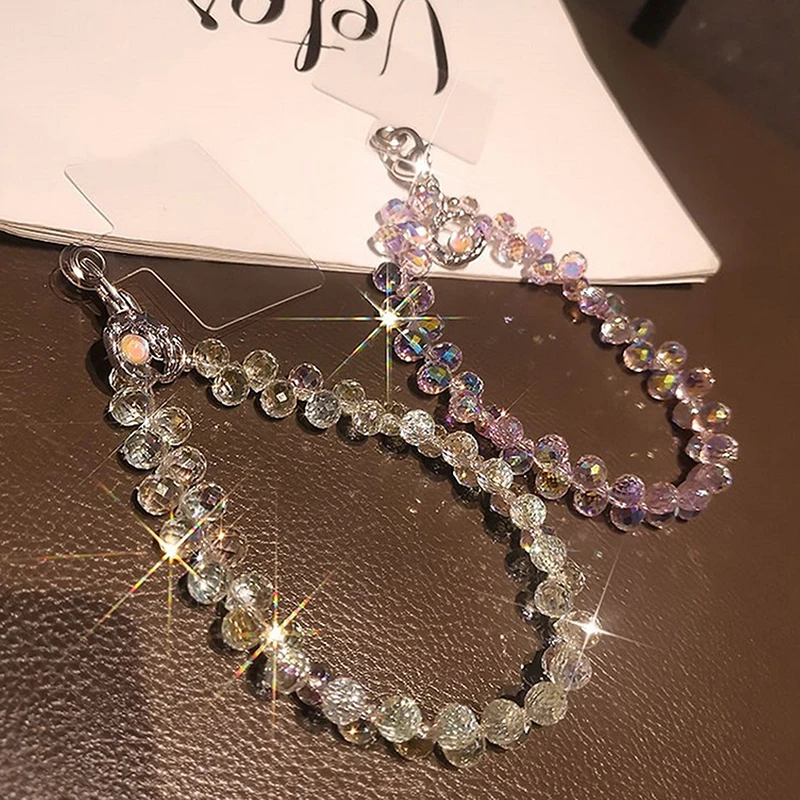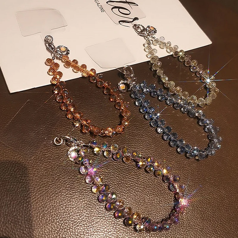 Comprar Cadena colgante de gota de agua de cristal, cordón para teléfono, cadena colgante corta de lujo de alta gama, cadena para muñeca con cuentas, colgante de mano