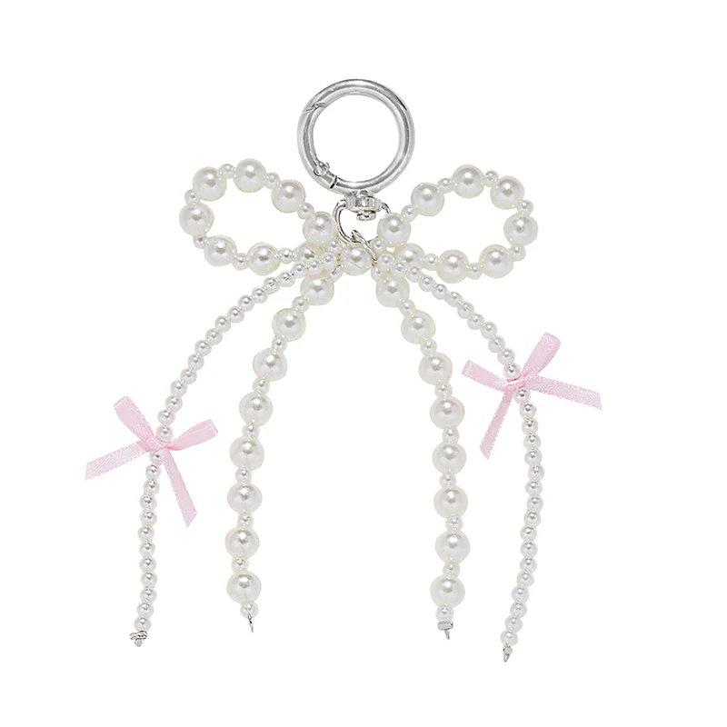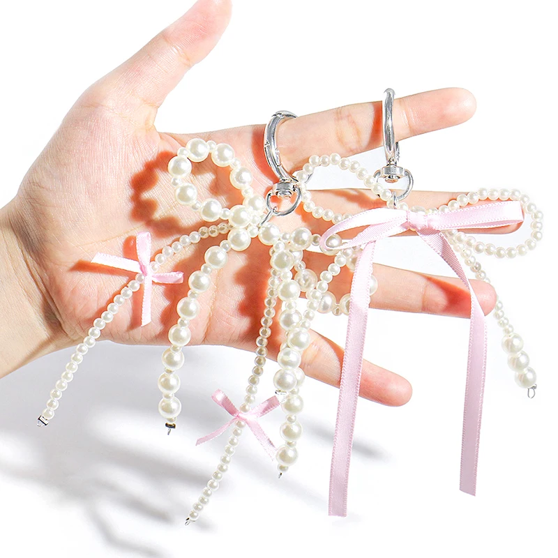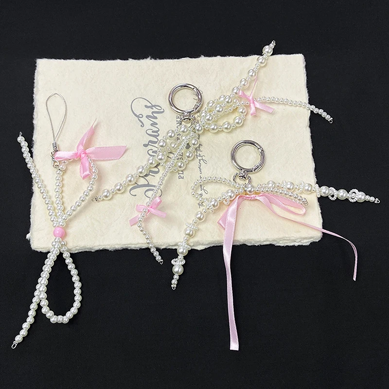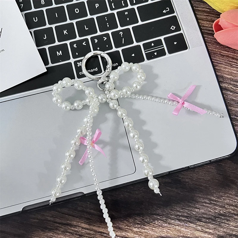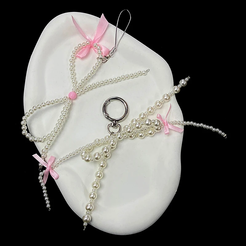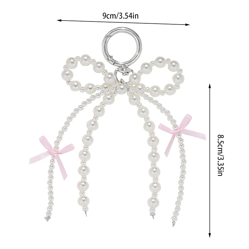 1. Exquisito y hermoso: el colgante es exquisito en diseño, con lazos hechos de perlas y cintas, hermoso y moderno, y puede agregar un encanto único a teléfonos móviles o bolsos.
