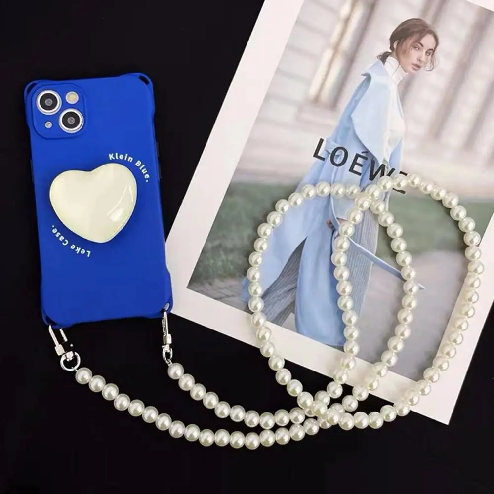 Cadena de caja de teléfono de 110cm, joyería para mujer, cadena larga de perlas de imitación, correa de hombro para bolso, funda de teléfono móvil antipérdida, cordón