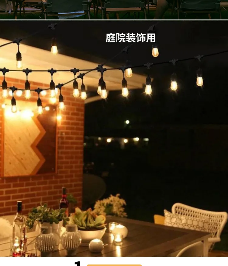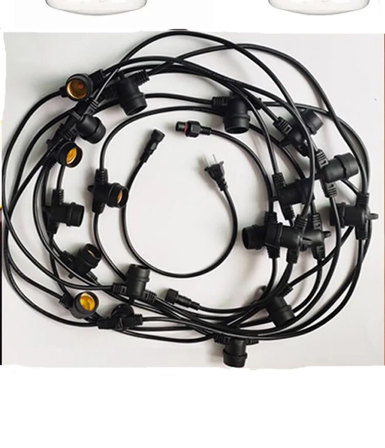 Cadena de luz LED impermeable E27, tienda de campaña, luz de ambiente, 110-230V, cable de alimentación para exteriores, conector de serie de decoración de boda