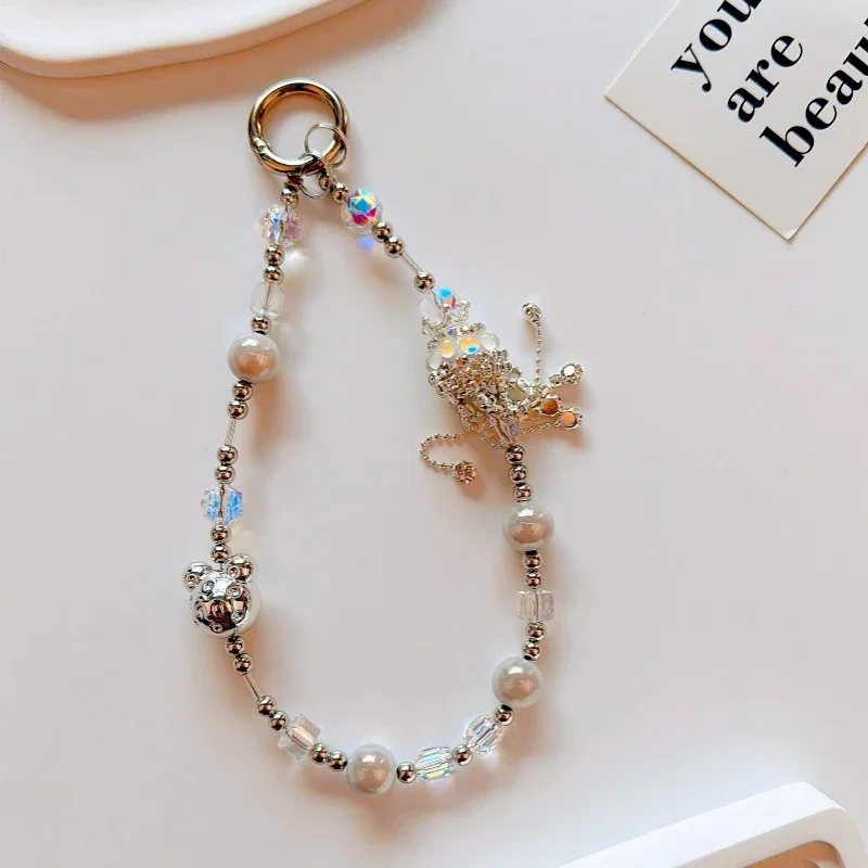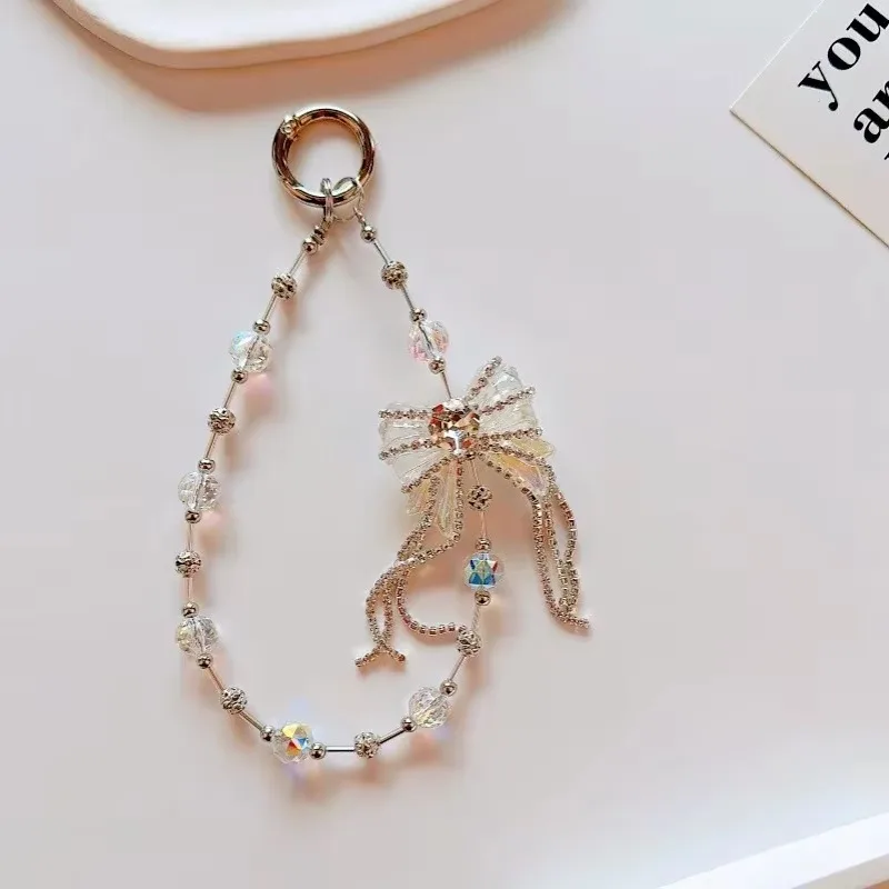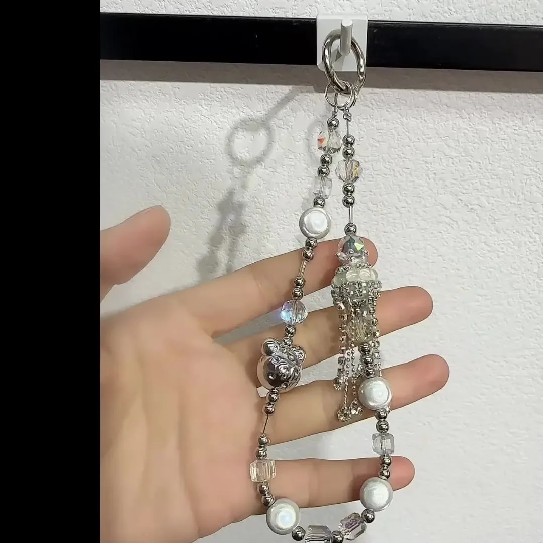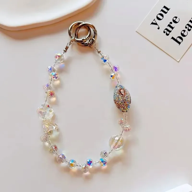 Comprar Cadena de teléfono hecha a mano estilo INS con cuentas de oso de fresa llavero bolso correa decoración regalo perfecto para mujeres y niñas