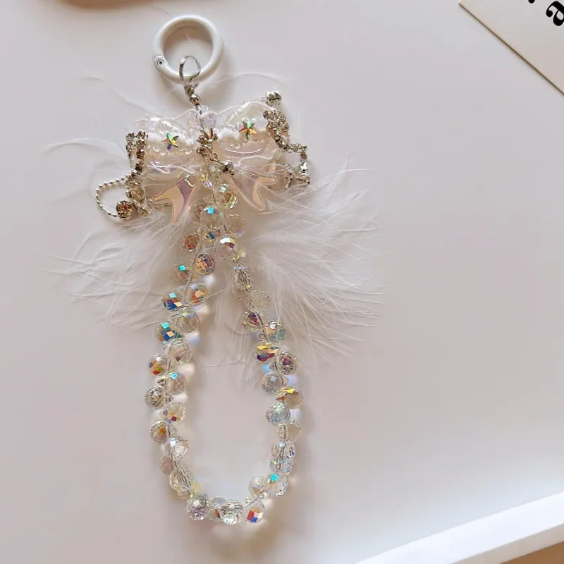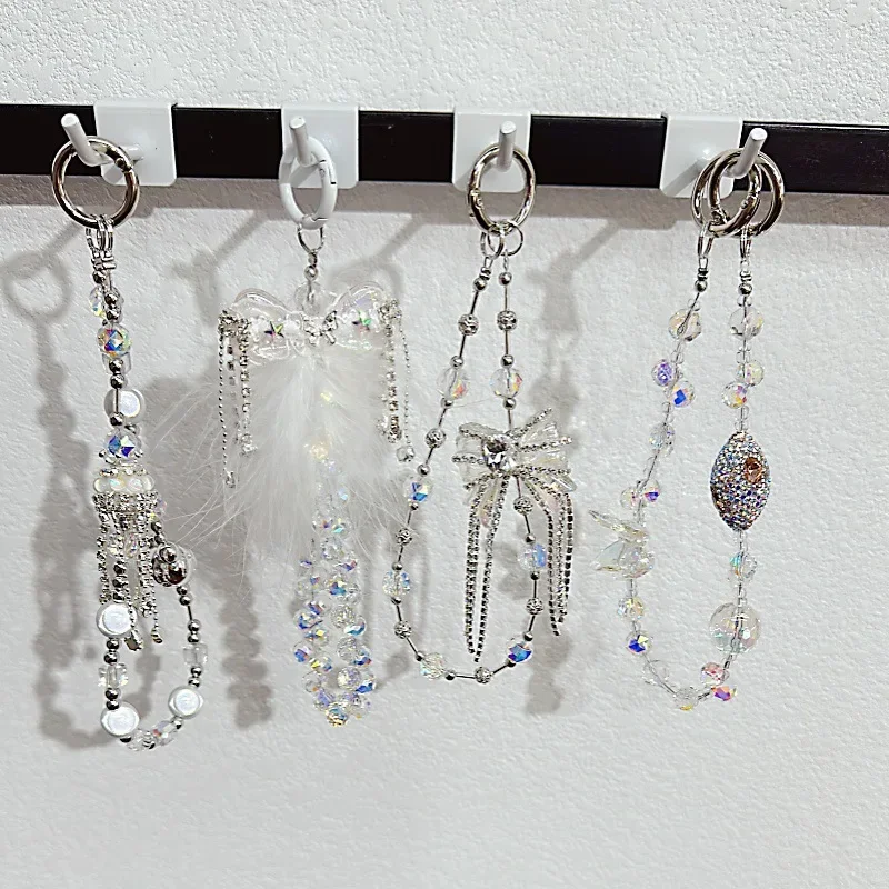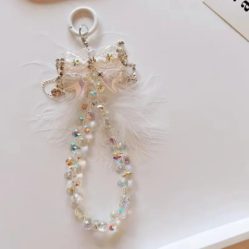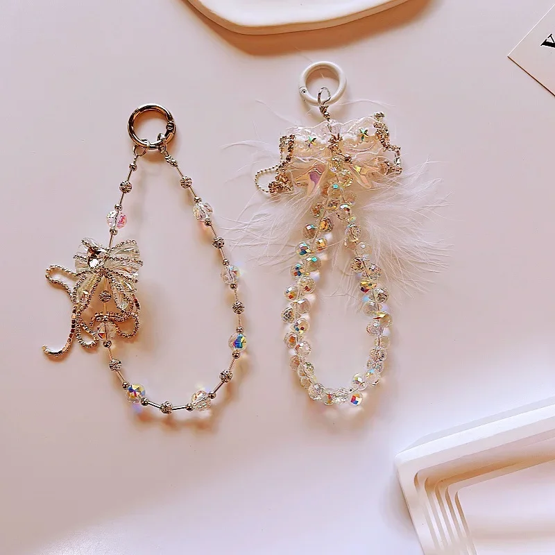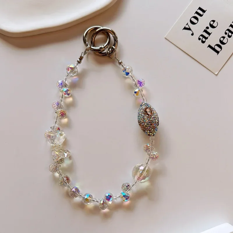 Comprar Cadena de teléfono hecha a mano estilo INS con cuentas de oso de fresa llavero bolso correa decoración regalo perfecto para mujeres y niñas