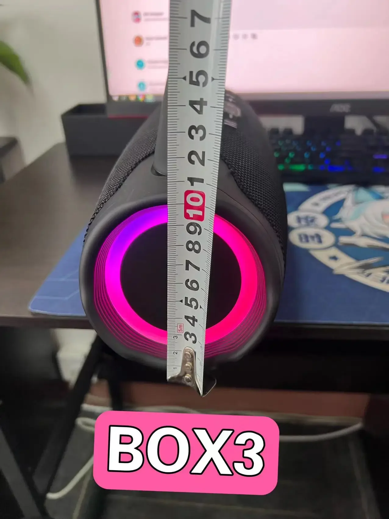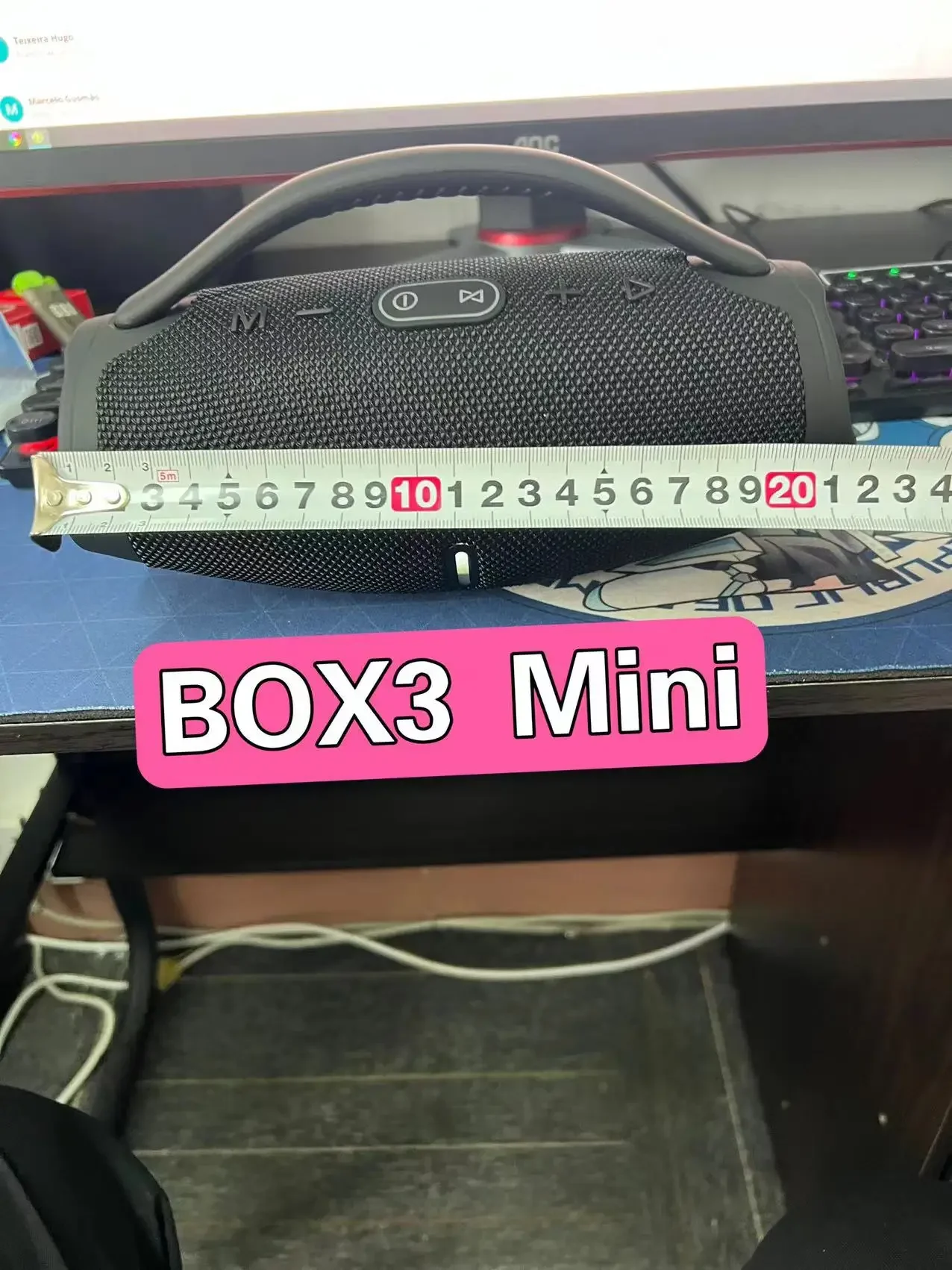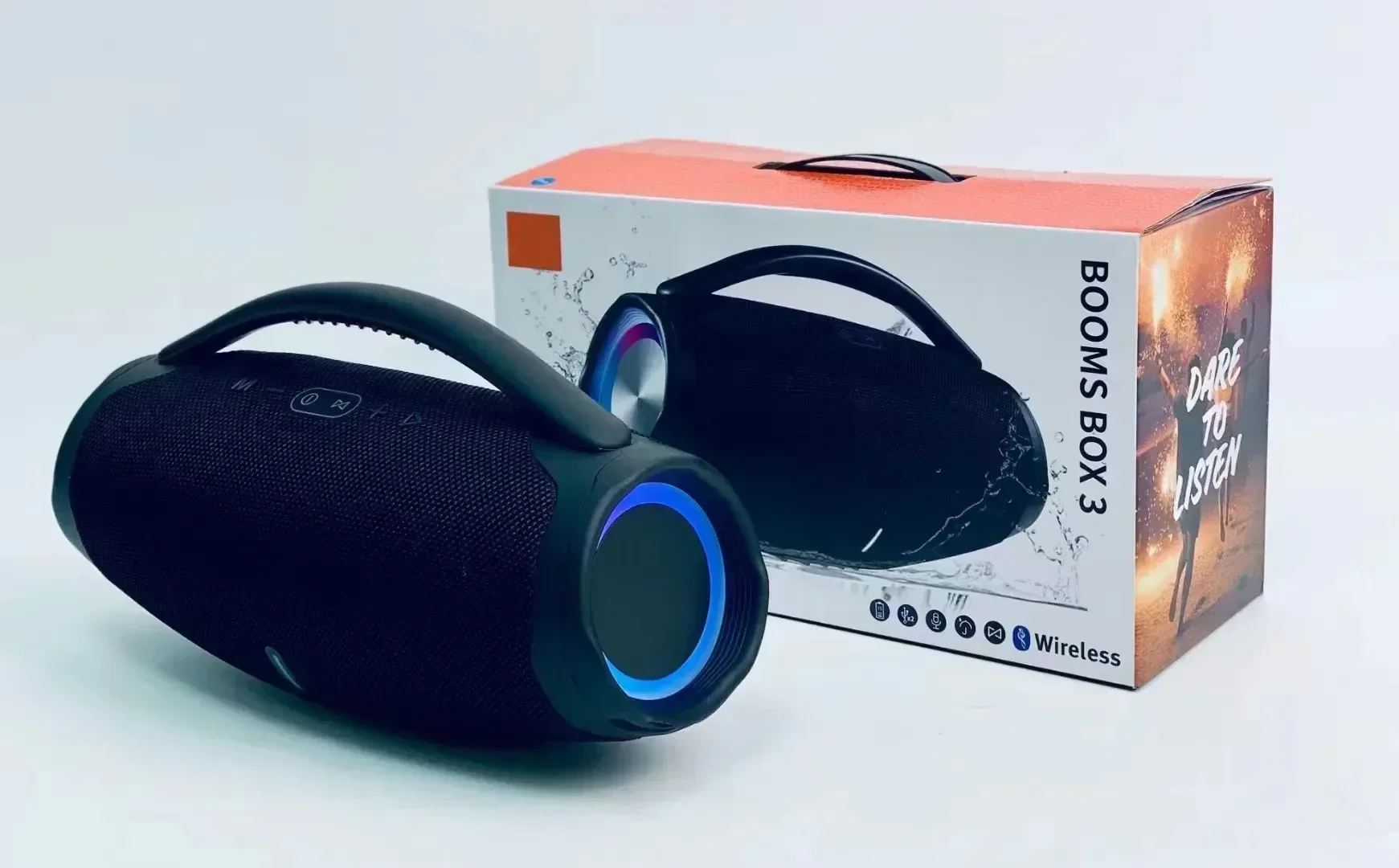 Estimado comprador, hay dos opciones para este sistema de audio, una es la versión grande y la otra es la versión mini Número de artículo Wboombox3RGBEscenarios aplicables: automóvil, escritorio, fitness, exterior, hogar, móvil, karaoke, transmisión en vivo, danza cuadrada, sistema de transmisión, césped al aire libre Método de conexión: Conexión Bluetooth Rango de respuesta de frecuencia: 100 HZ-20 KHZ Relación señal-ruido: ≥ 75 dB Número de altavoces: 2 Distancia efectiva: 10 metros Material de la carcasa: ABS Material de la caja: ABS Tamaño de apariencia: 332 * 135 * 185 mm Peso del producto: 1.34 (KG) Color: negro, azul, rojo, camuflaje Modo de alimentación: USB Grado de impermeabilidad: ipx 6 Versión Bluetooth: 5.0 Potencia nominal: 100W Formatos admitidos: TF, USB, AUX, TF Funciones adicionales: inserción de tarjeta, iluminación, función de llamada Batería incorporada: Batería incorporada