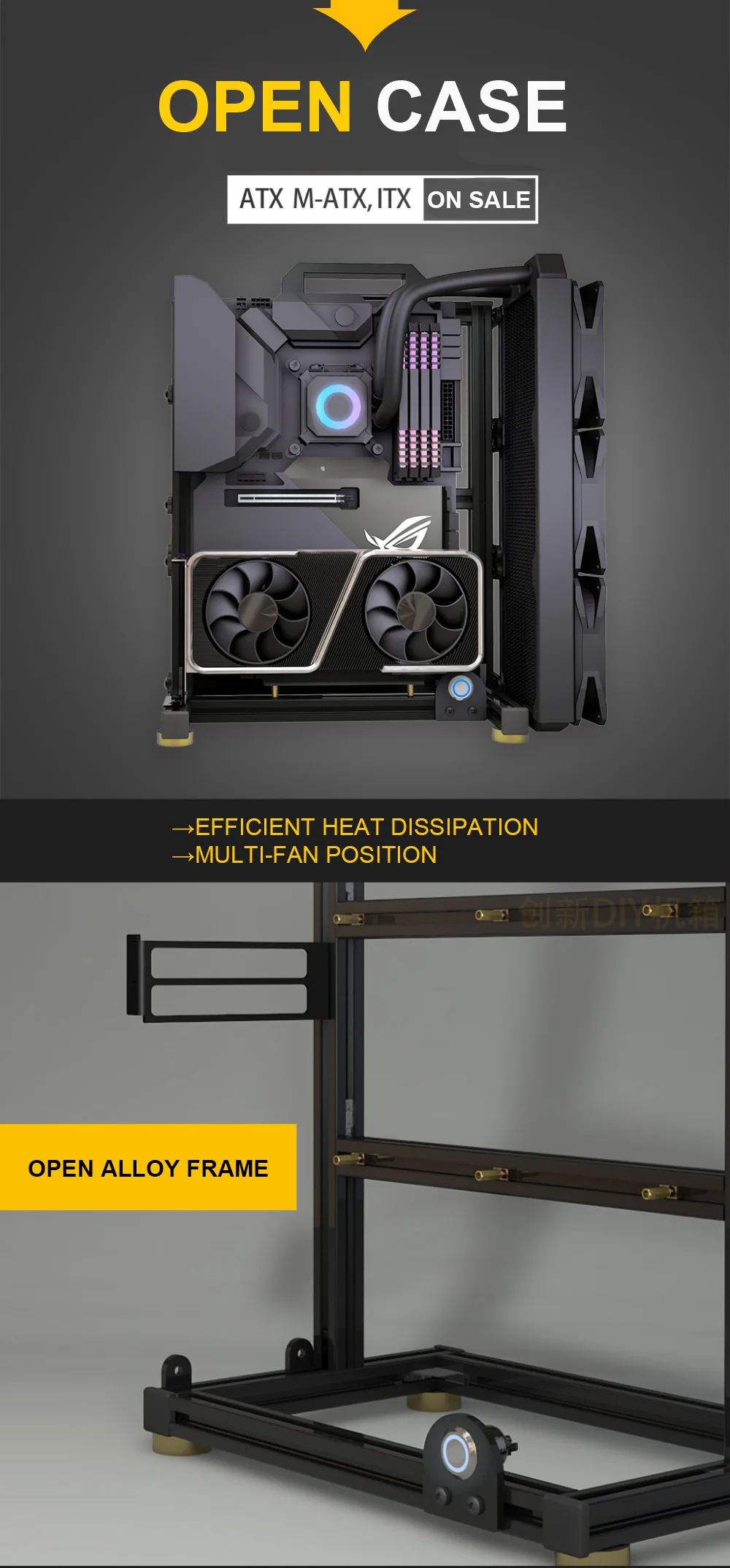 Comprar Caja abierta de PC para Gamers, gabinete ATX MOD, bastidor de chasis, marco de Base de computadora DIY, escritorio MATX, aluminio creativo ITX EATX Tower Gaming