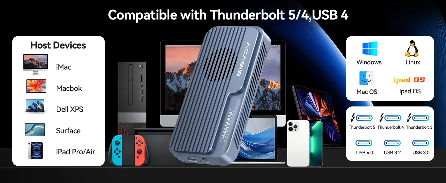 Estuche Thunderbolt 5 Ssd|Interfaz Thunderbolt 5 de 80 Gbps: Logre una transferencia de datos rápida con la interfaz Thunderbolt 5 de 80 Gbps, perfecta para flujos de trabajo de alta velocidad.