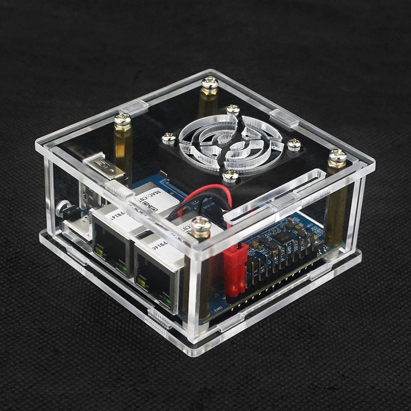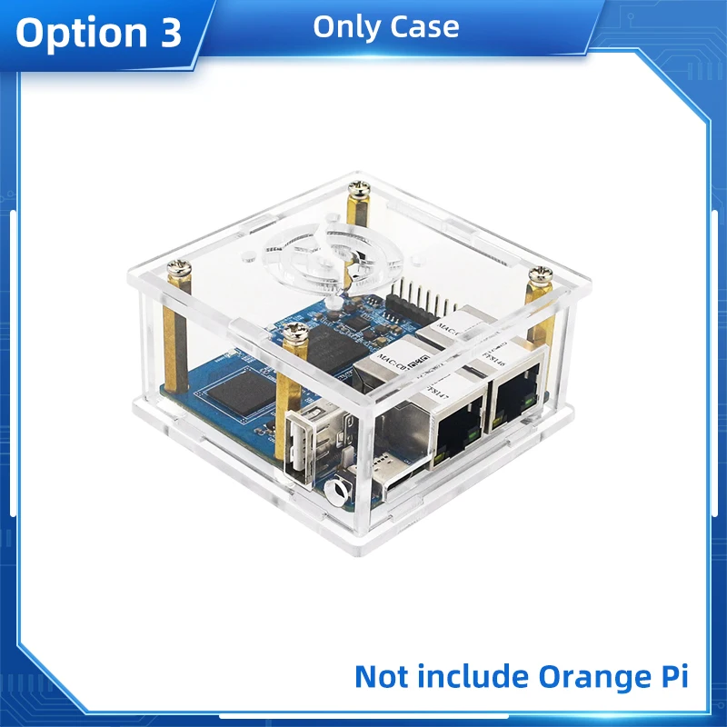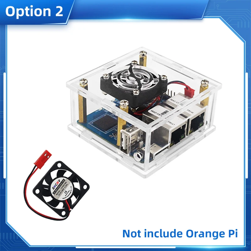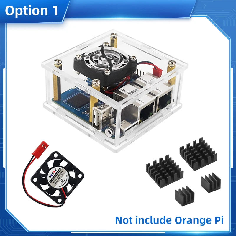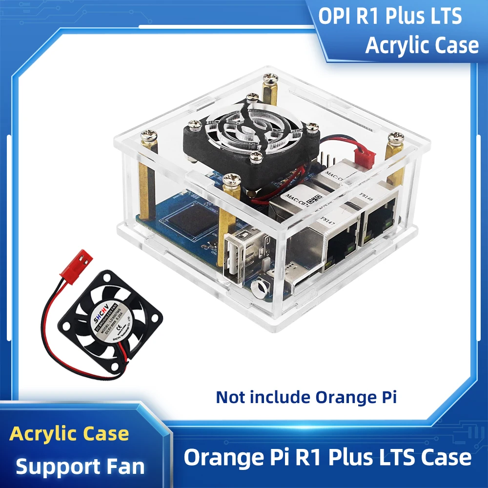 Comprar Caja acrílica naranja Pi R1 Plus LTS, caja de protección de carcasa transparente, ventilador de refrigeración opcional, disipador de calor para placa OPI R1 Plus LTS