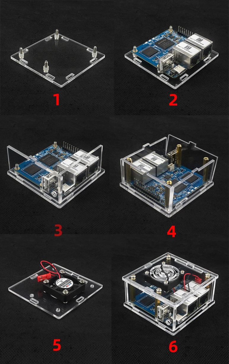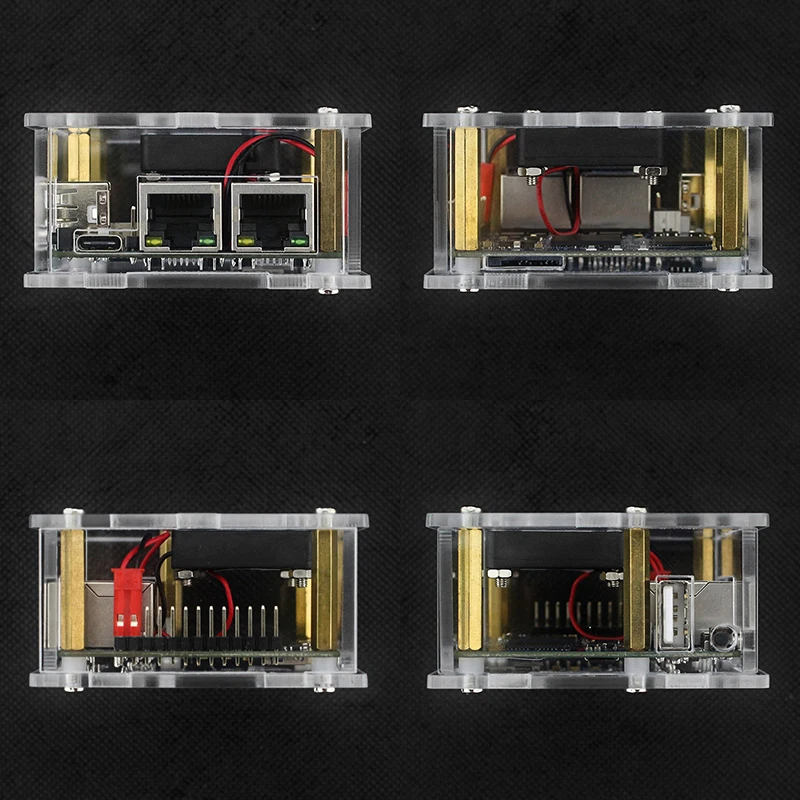 Orange Pi R1 Plus LTS carcasa acrílica caja de protección de carcasa transparente ventilador de refrigeración opcional disipador de calor para placa OPI R1 Plus LTS