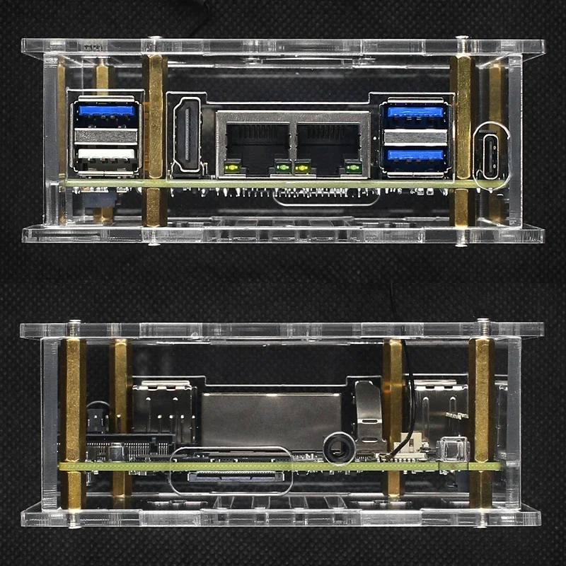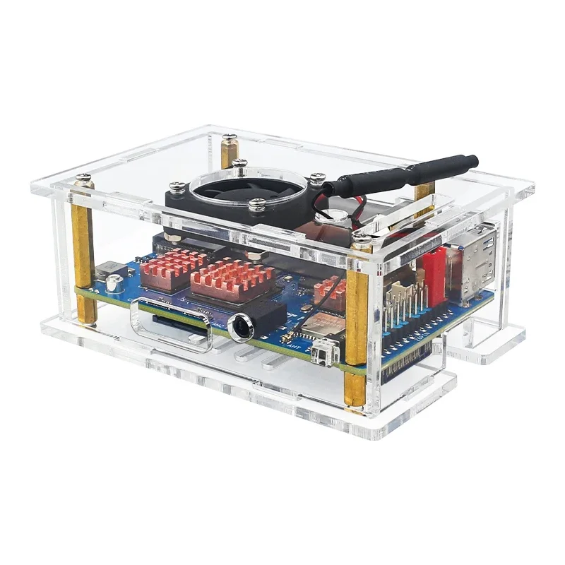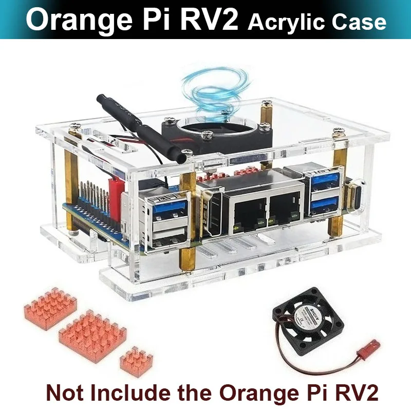 Comprar Caja acrílica Orange Pi RV2, ventilador de refrigeración, disipadores de calor de cobre, caja protectora opcional, carcasa transparente para placa única Orange Pi RV2