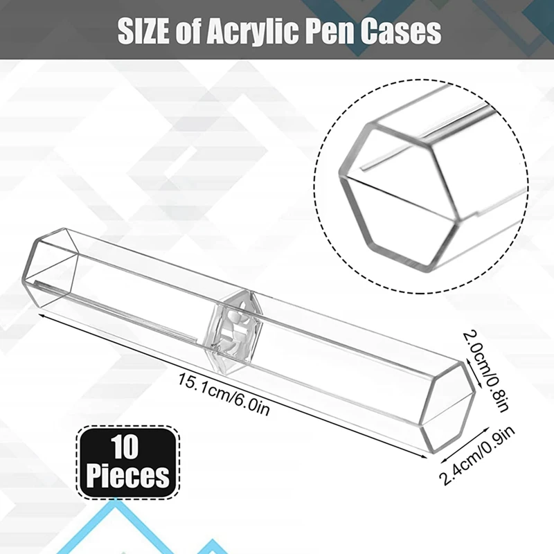Estuche Transparente para Bolígrafos Acrílicos, Caja de Regalo para Bolígrafos, Contenedor de Almacenamiento Hexagonal Individual para Oficina y Escuela, 20 Unidades