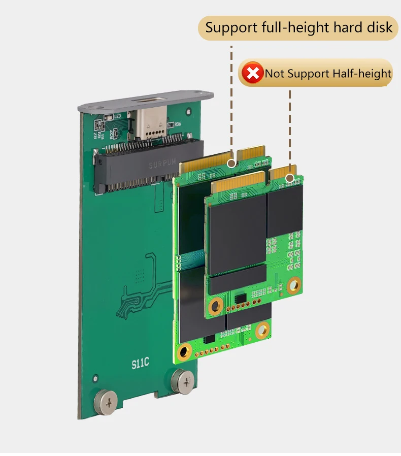 1.Conectividad de alta velocidad: Nuestro producto cuenta con conectividad mSATA a Type-C USB 3.1 gen 2 de 10 Gbps, que proporciona velocidades de transferencia de datos rápidas de hasta 6 Gbps, limitadas por el protocolo SATA.