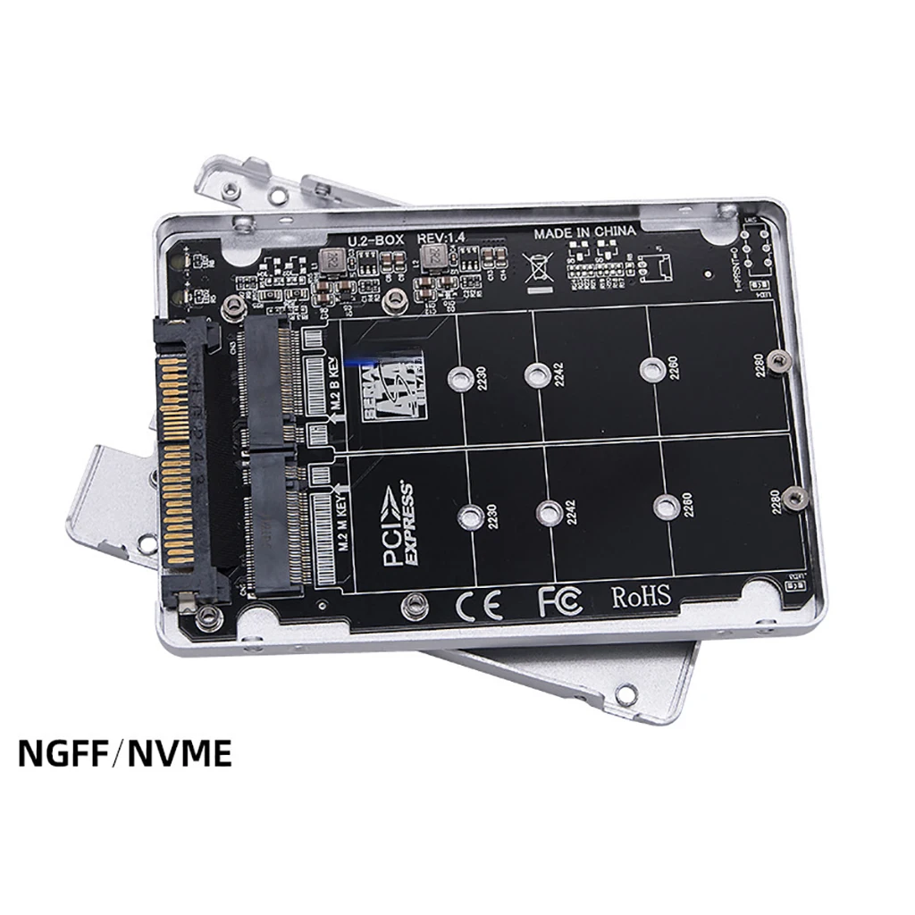 Caja de aleación de aluminio PCIe 3.0 x4 M.2 a U.2 (SFF-8639) Tarjeta adaptadora de 32 Gbps para SSD M.2 NVME NGFF PCI-E SATA 2230 2240 2262 2280