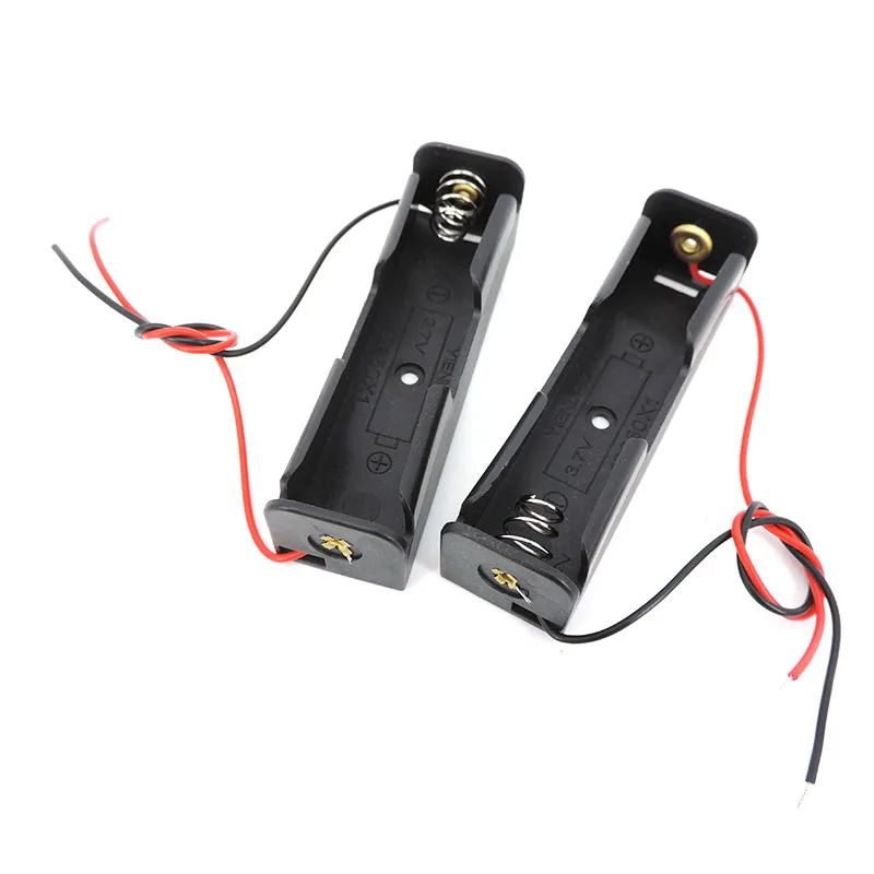 Caja de almacenamiento de batería de plástico negro 1x18650, caja de almacenamiento de 1 ranura, contenedor de soporte de Clip de baterías DIY con cable de 2 pines, 10 piezas