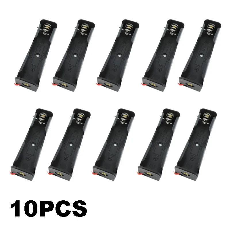Comprar Caja de almacenamiento de batería, contenedor de plástico negro de 10 piezas, 1x18650, 1 ranura, soporte de Clip para baterías DIY con cable de plomo de 2 pines
