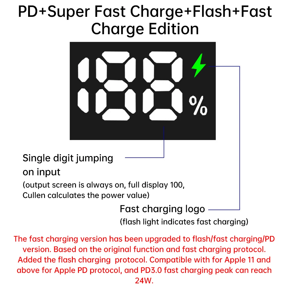 Si el protocolo privado del teléfono no es compatible (USB sin carga rápida), puede usar la carga PD (salida TYPE-C), la salida del protocolo público PD es más estable