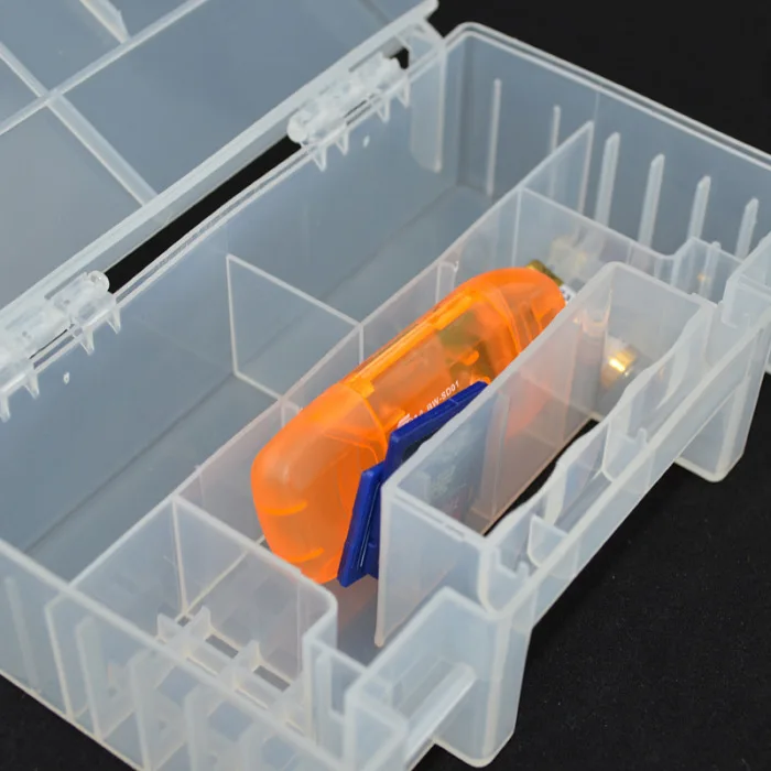 Puede contener 20 pilas AA + 14 pilas AAA y otras cosas pequeñas.