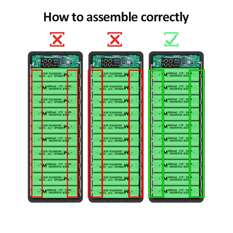 10*18650 funda de banco de energía cargador de teléfono móvil USB Dual QC 3,0 PD carga rápida funda de carcasa DIY 18650 soporte de batería caja de carga