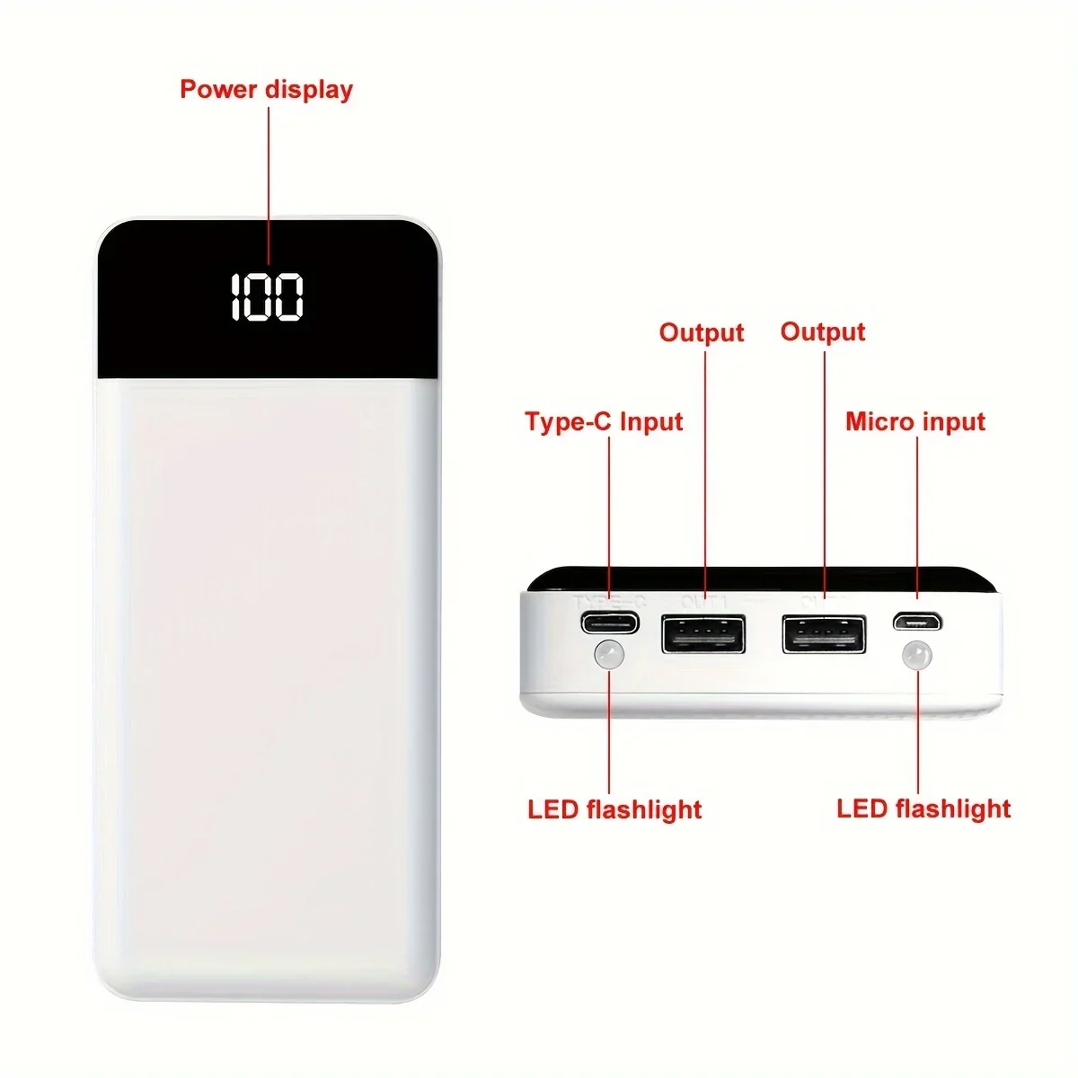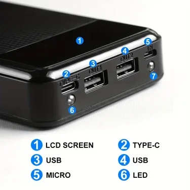 Comprar Caja de almacenamiento de batería tipo C con pantalla LED, soporte de energía sin soldadura para teléfono móvil, 18650 mAh, USB Dual, 20000
