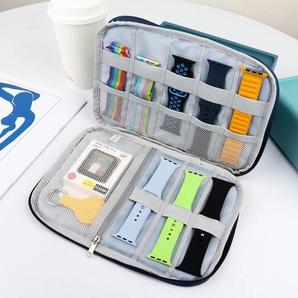 Caja de almacenamiento de correa de reloj para correas de Apple Watch, bolsa de viaje portátil, organizador de cables de datos para reloj inteligente para Samsung, Huawei y Xiaomi