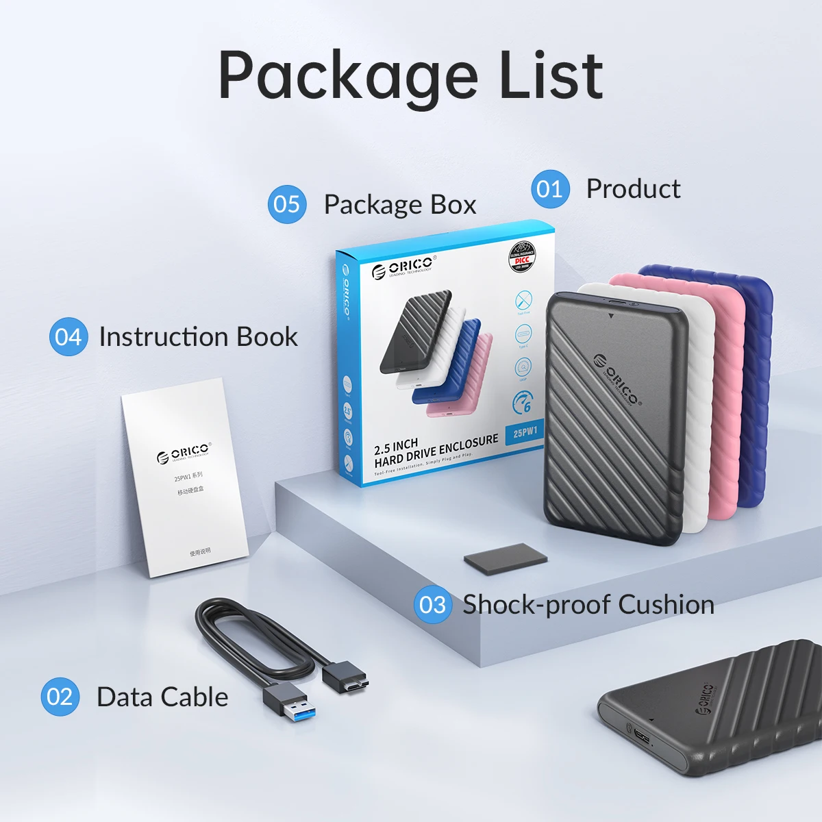 Comprar Caja de almacenamiento externa ORICO MicroB USB3.0 2.5" para disco duro SSD SATA de 5 Gbps con soporte UASP para PC portátil.