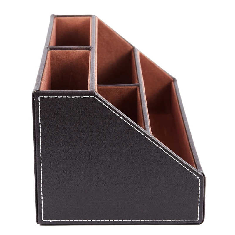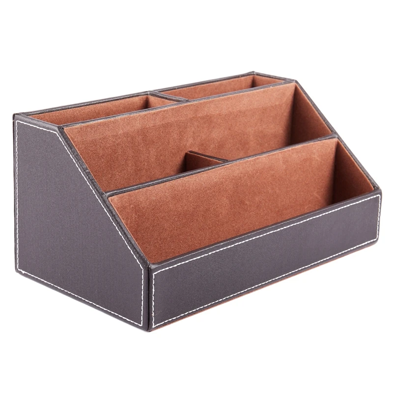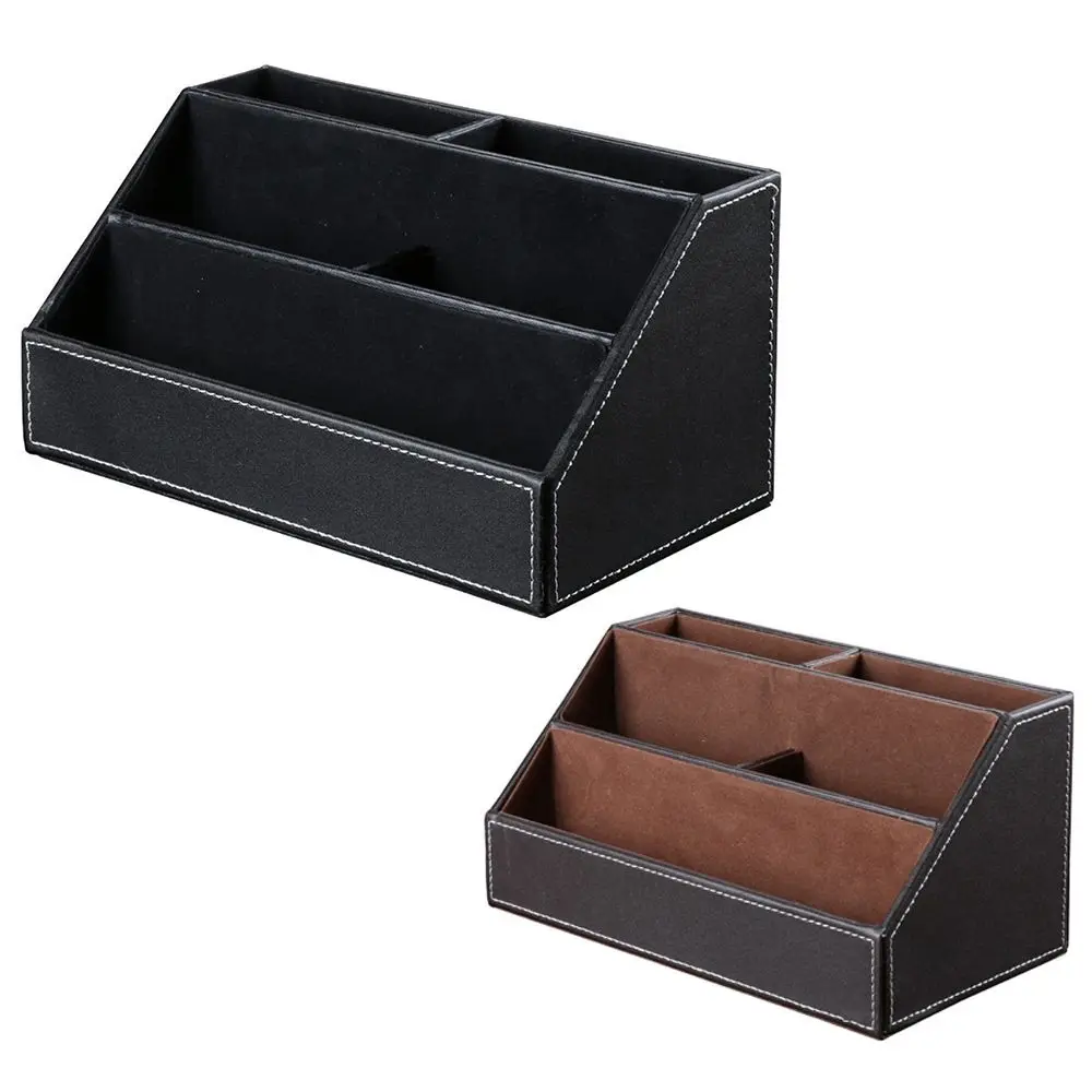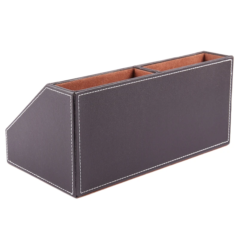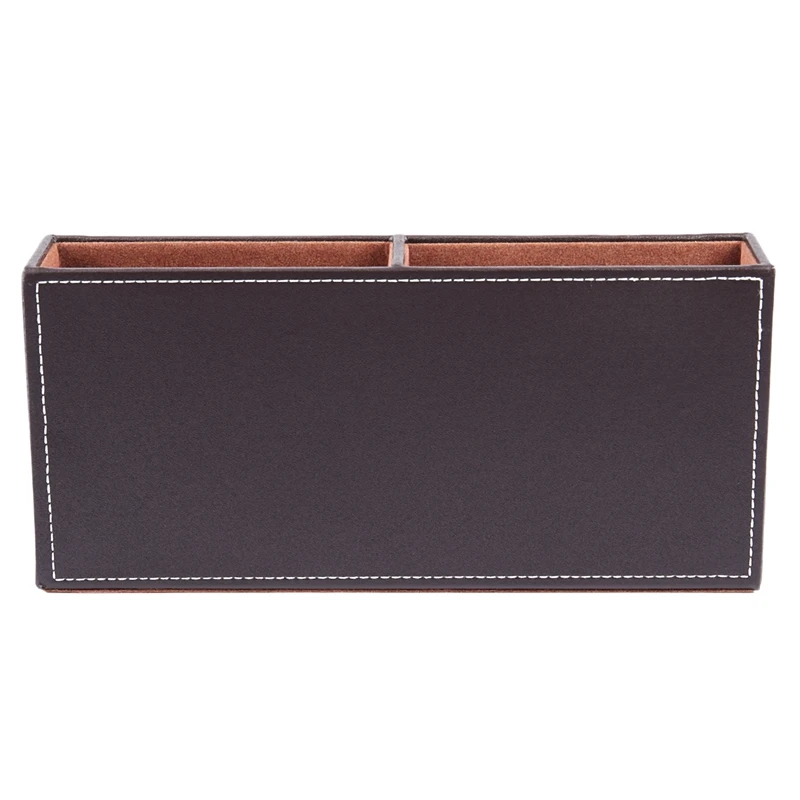 Caja de almacenamiento organizadora de papelería de escritorio multifunción de cuero con estructura de madera para oficina en casa, bolígrafo/lápiz, teléfono móvil, nombre comercialDiseño elegante y construcción robusta
