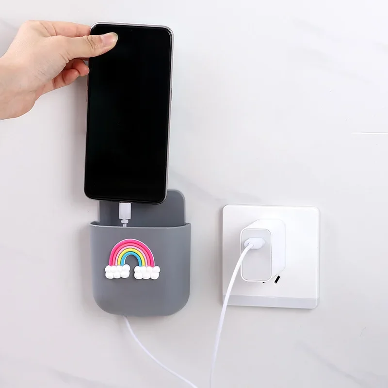 Caja de almacenamiento organizadora montada en la pared, sin perforaciones, soporte de pared para enchufe de teléfono móvil montado con Control remoto, carga