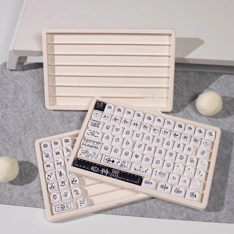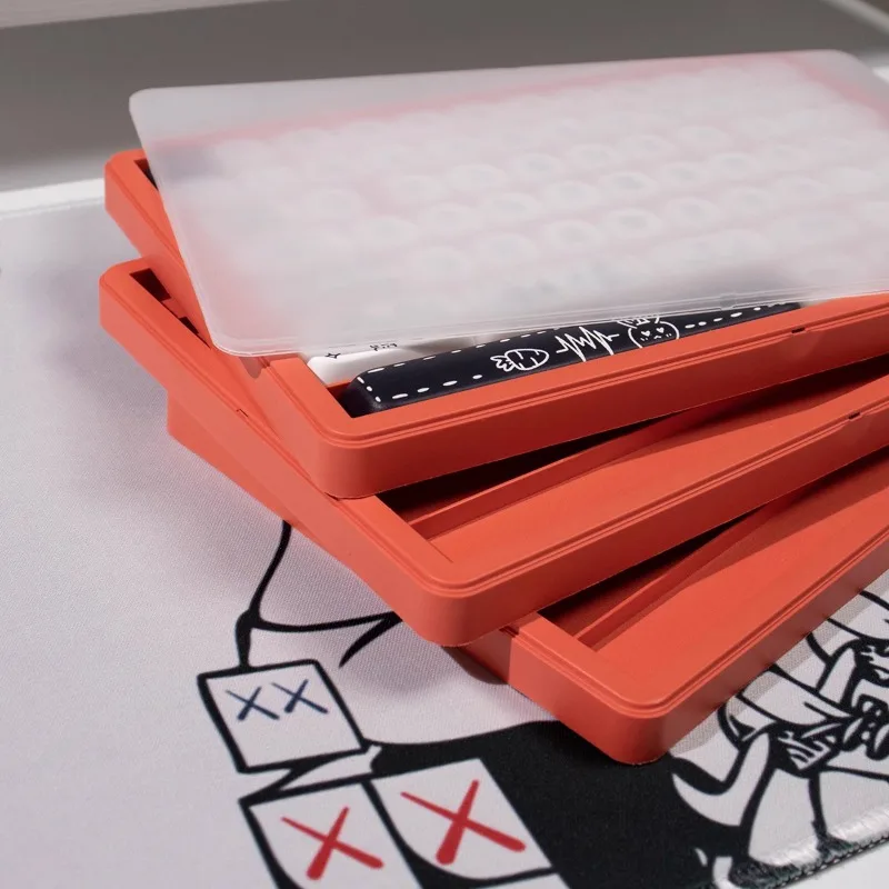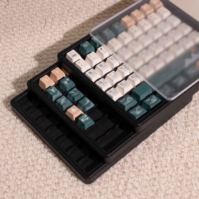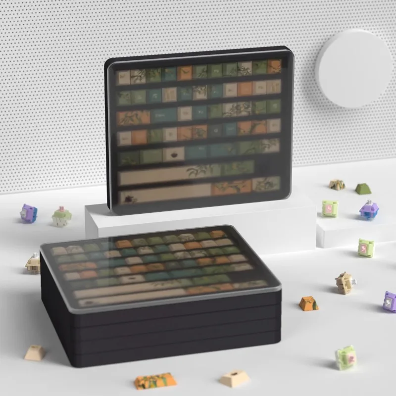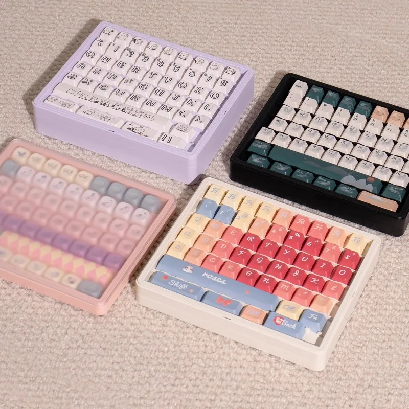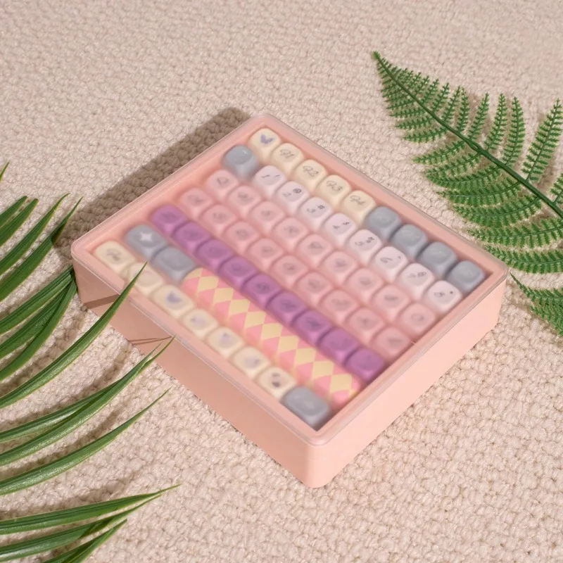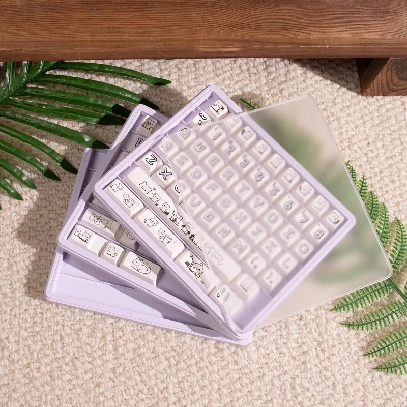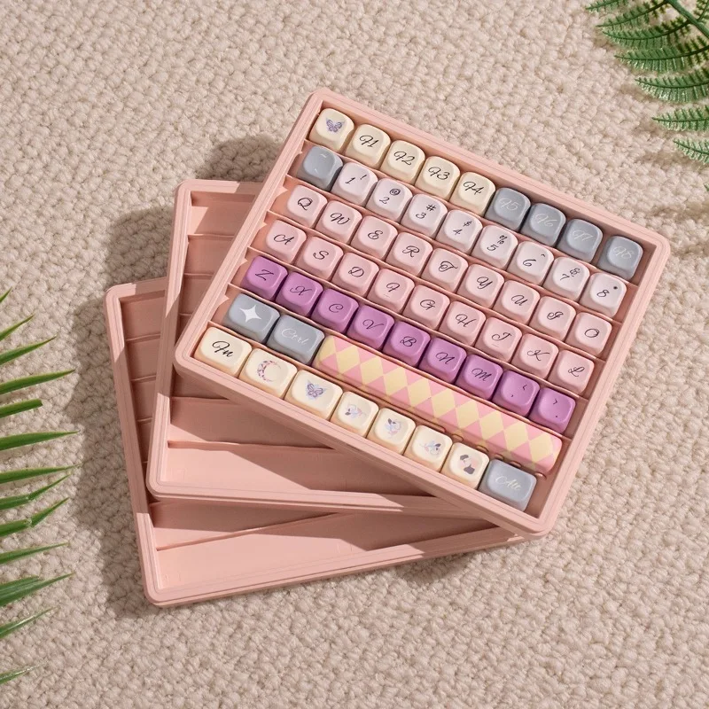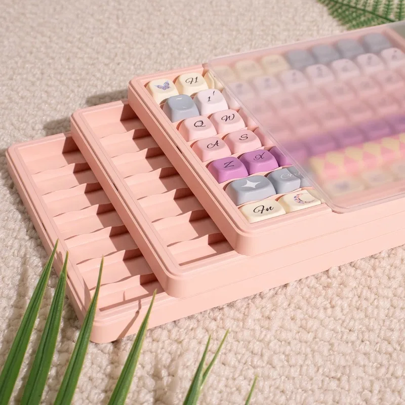 Caja de almacenamiento de teclas para teclado mecánico, color rosa/morado/blanco leche, caja de presentación de colección de plástico a prueba de polvo apilable