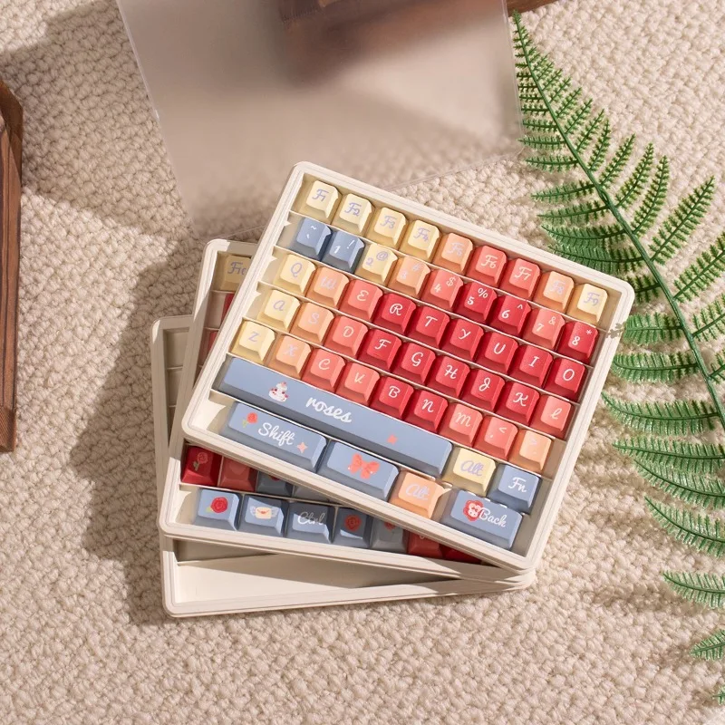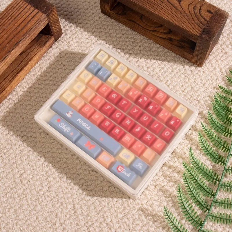 Comprar Caja de almacenamiento de teclas para teclado mecánico, color rosa/morado/blanco leche, caja de presentación de colección de plástico a prueba de polvo apilable