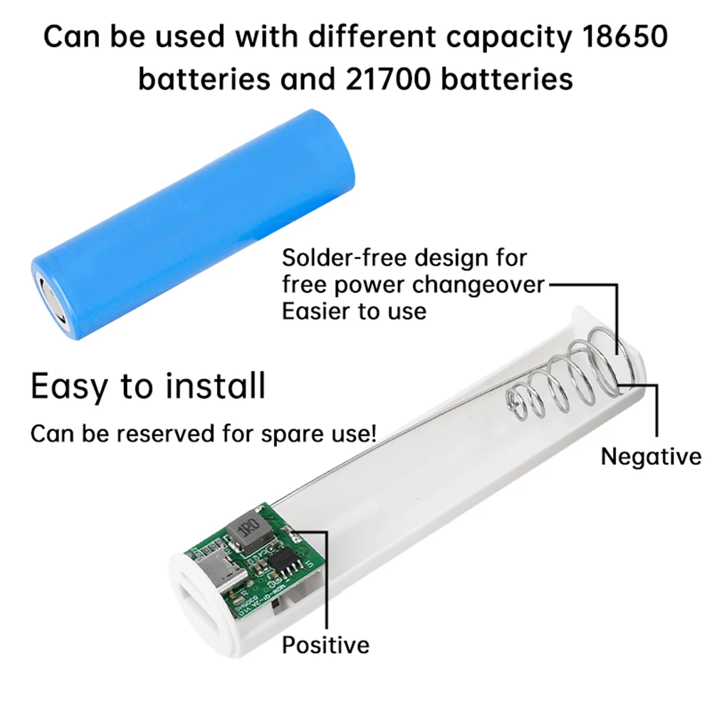 1 x Caja de almacenamiento de kit de bricolaje de banco de energía de metal Soldadura gratuita para 1 batería 18650/21700 Cargador externo tipo C de 5 V 2 A para teléfono inteligente