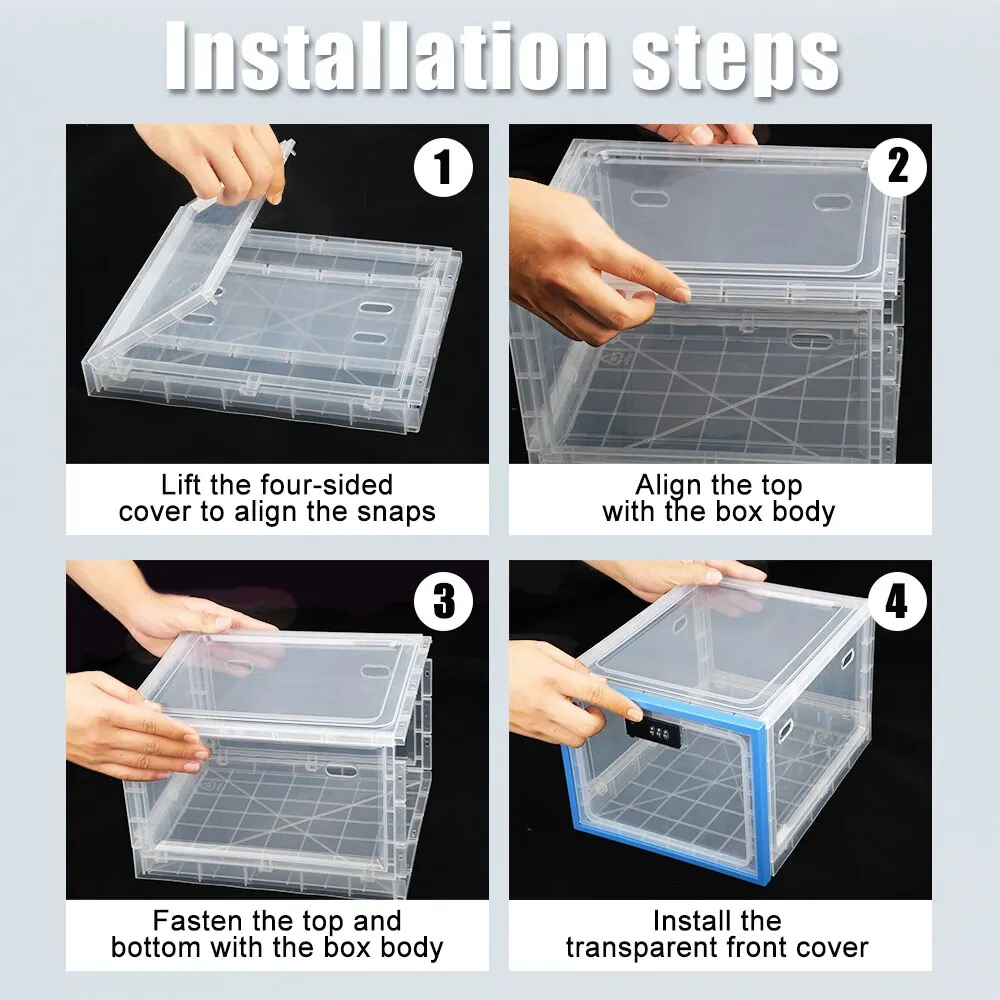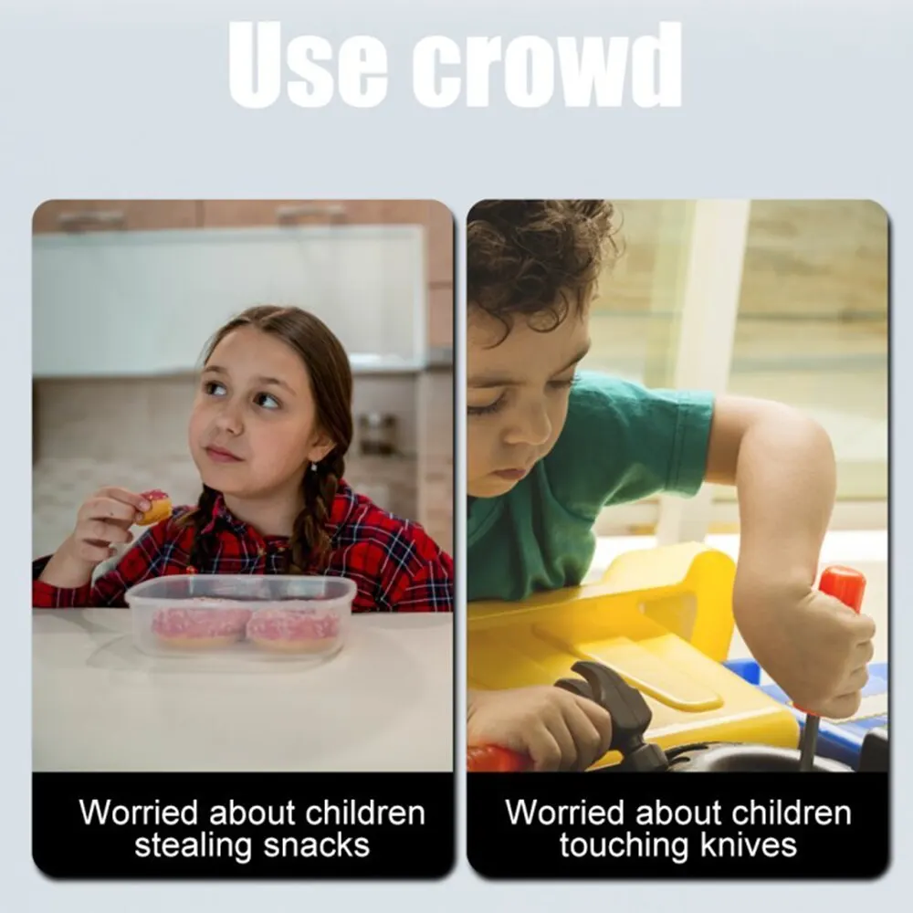 3. materiales de alta calidad: El producto es ligero y fácil de limpiar. Nuestra caja de seguridad está hecha de plástico de policarbonato líder en el mercado, utiliza materiales ecológicos de calidad alimentaria, no contiene BPA y le permite almacenar alimentos y medicamentos con confianza. El material transparente permite que otros puedan verlo, no puedo tocarlo, y ya no me preocupo por tener niños en casa.