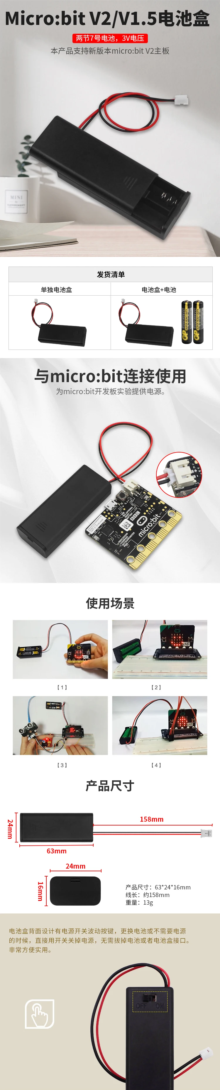 Comprar Caja de batería 2AAA Dos cajas de baterías de 7 o 5 Voltaje de 3 V con soporte de batería de conmutación para Microbit