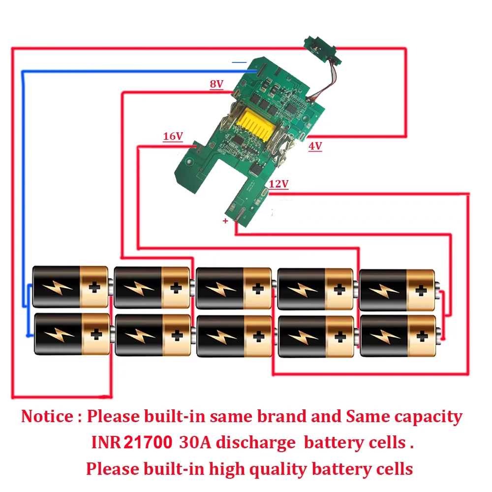 Placa de protección de detección de batería única.El IC dual incorporado detecta el voltaje de cada celda.¡Y recuerda el número de veces de uso!Y las nuevas máquinas de todas las series realizan el apagado por bajo voltaje.¡Coopere con muchas fábricas de herramientas eléctricas!Calidad estable y antivibración.Es el socio actual de la llave dinamométrica, el taladro de impacto y la amoladora angular de Makita.La autodescarga es de sólo 1,2 uA.