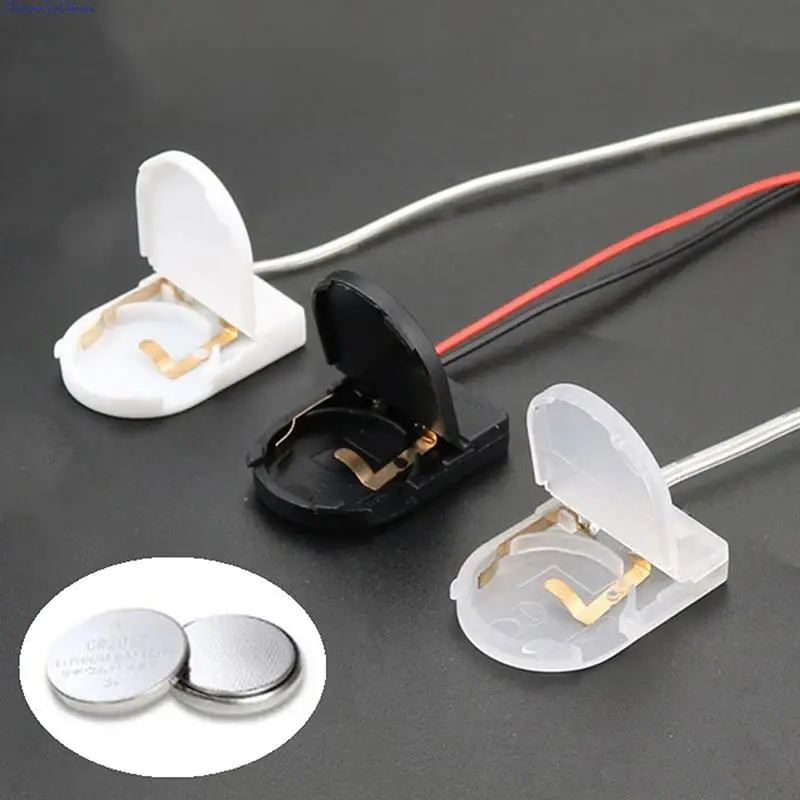 Comprar Caja de batería CR2032 CR 2032 con ranura única, 5 piezas, botón, soporte para Pila, cubierta con interruptor de encendido y apagado, cables, 3V