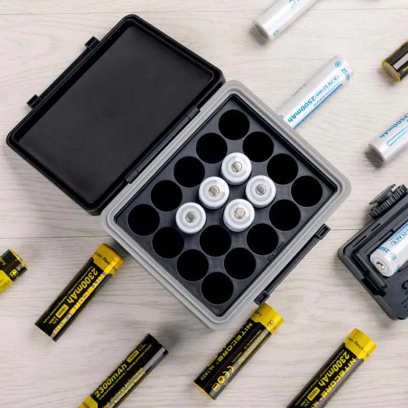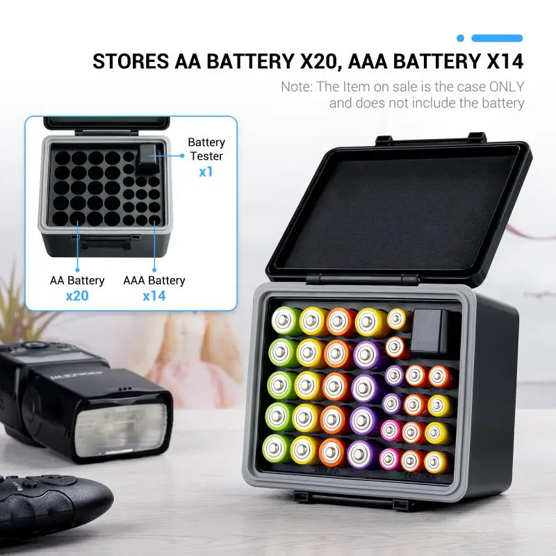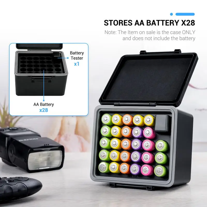 Una caja pequeña, muchas baterías o baterías encaja. Hay un probador de batería.