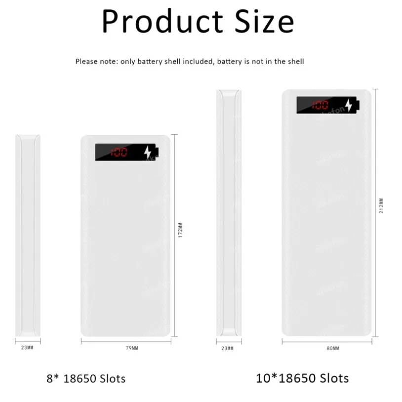 Comprar Caja de batería portátil 8/10x18650, soporte para fundas, 2 salidas USB, entrada Micro tipo C, carcasa de cargador LED Dual para teléfono y tableta