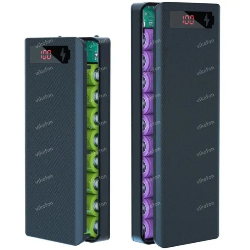 Comprar Caja de batería portátil 8/10x18650, soporte para fundas, 2 salidas USB, entrada Micro tipo C, carcasa de cargador LED Dual para teléfono y tableta